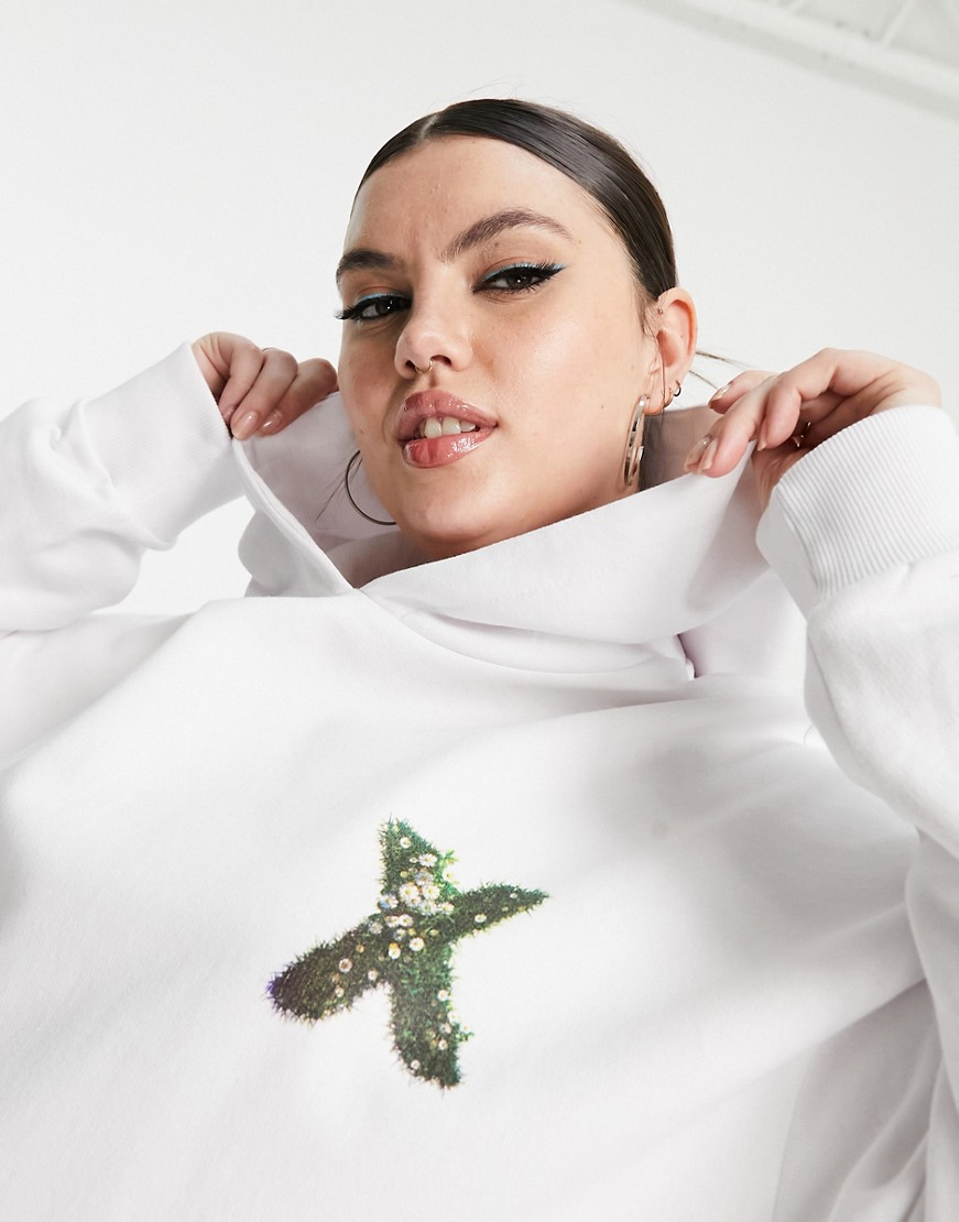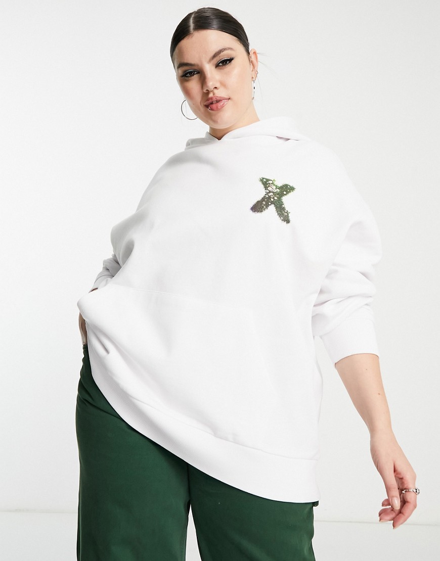 Biała bluza oversize z kapturem i logo 44