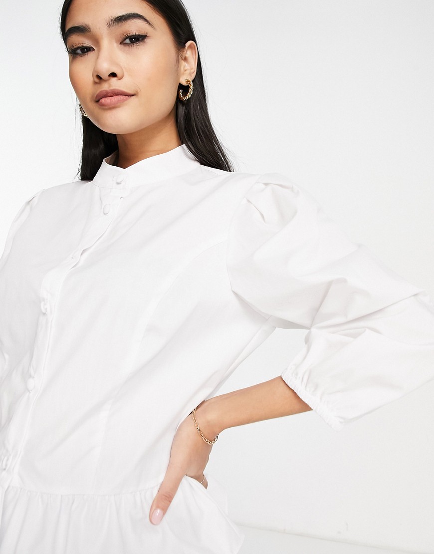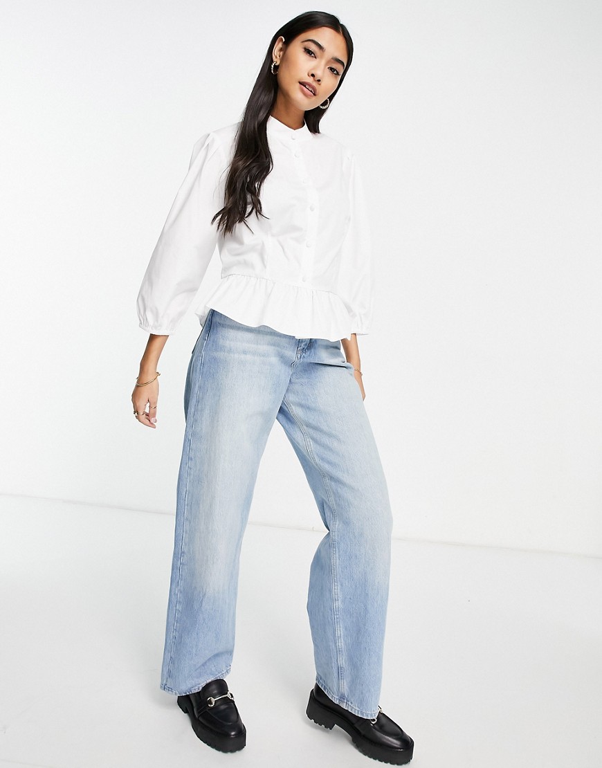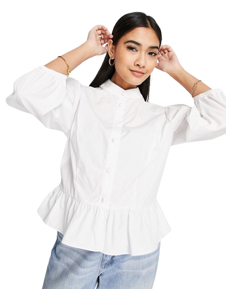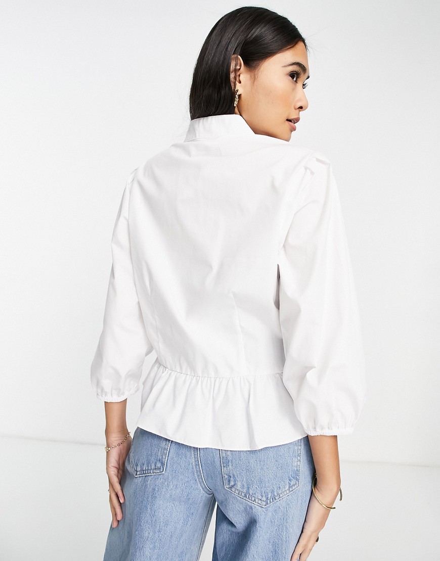 Biała bluzka z baskinką i obszernymi rękawami 42