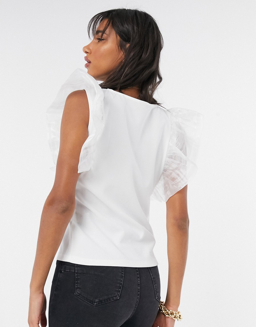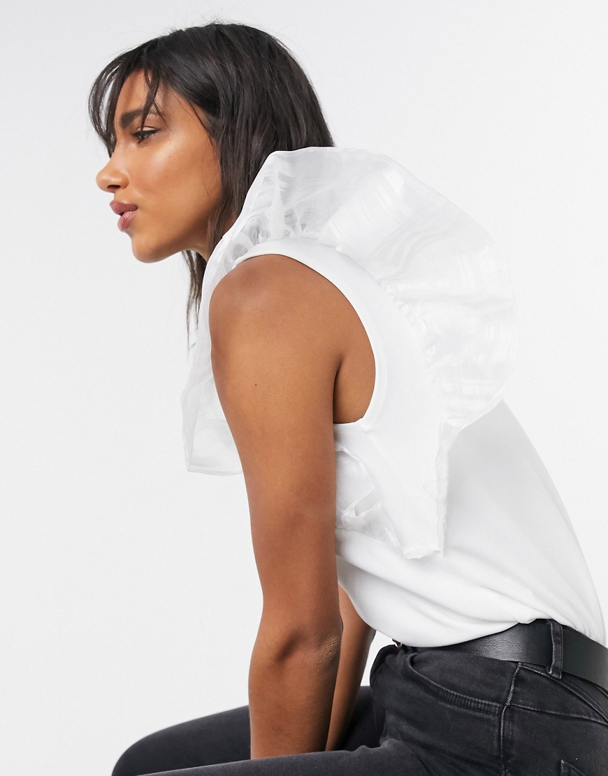 Biała bluzka z falbankami z tafty 40