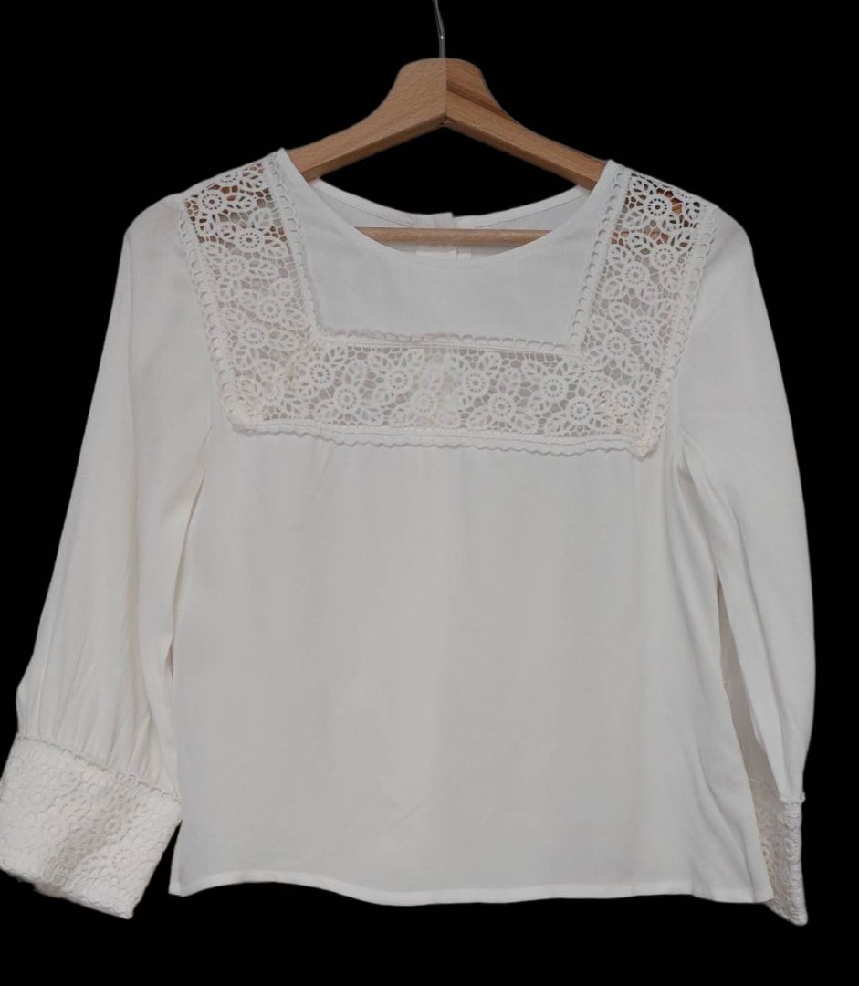 Biała bluzka z haftowaną wstawką 32