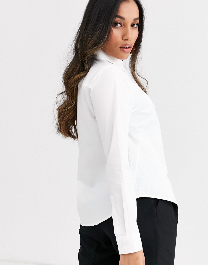 Biała dopasowana koszula z długim rękawem z bawełny ze stretchem 36