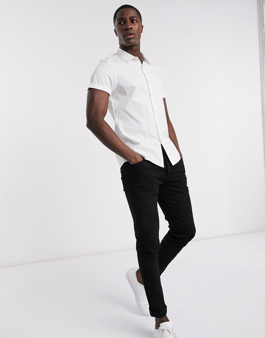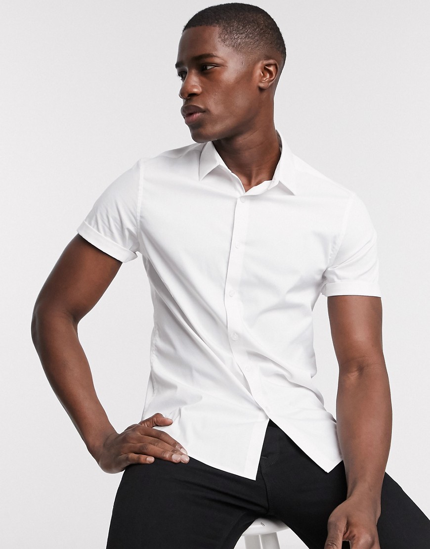 Biała elegancka koszula ze stretchem o dopasowanym kroju M