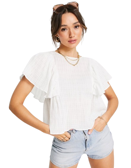 Biała fakturowana bluzka z falbankami na rękawach defekt 40