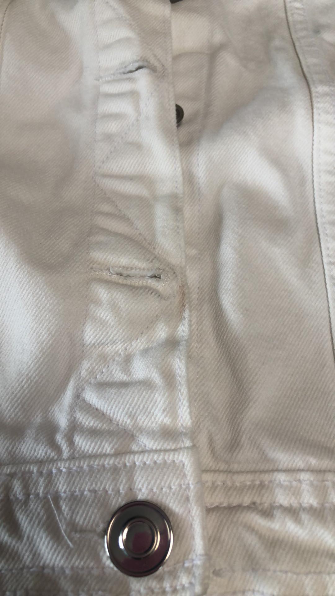 - Defekt zabrudzenie materiału przy guzikach z przodu oraz na dole z tyłu, zdjęcie w galerii produktu