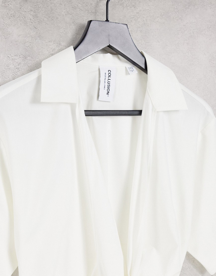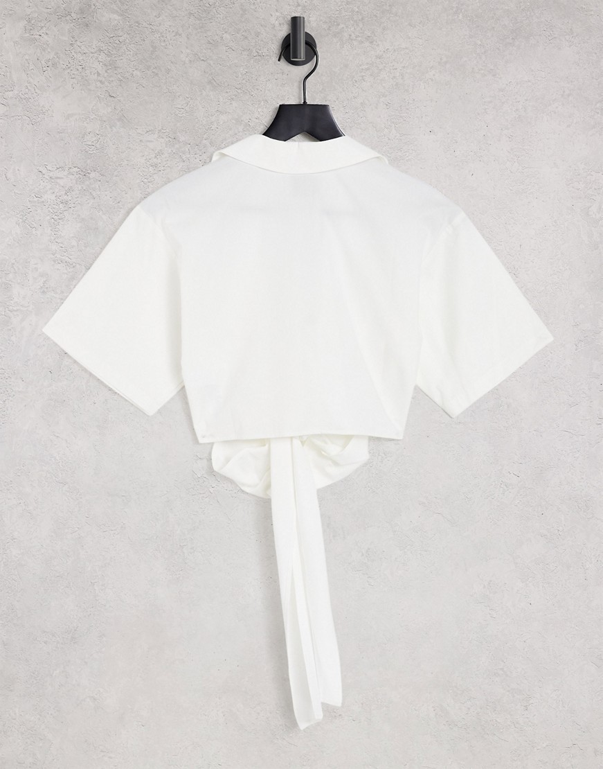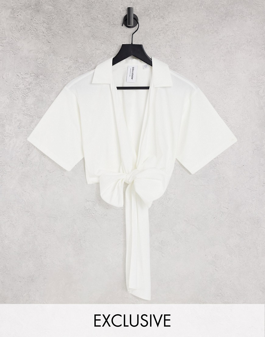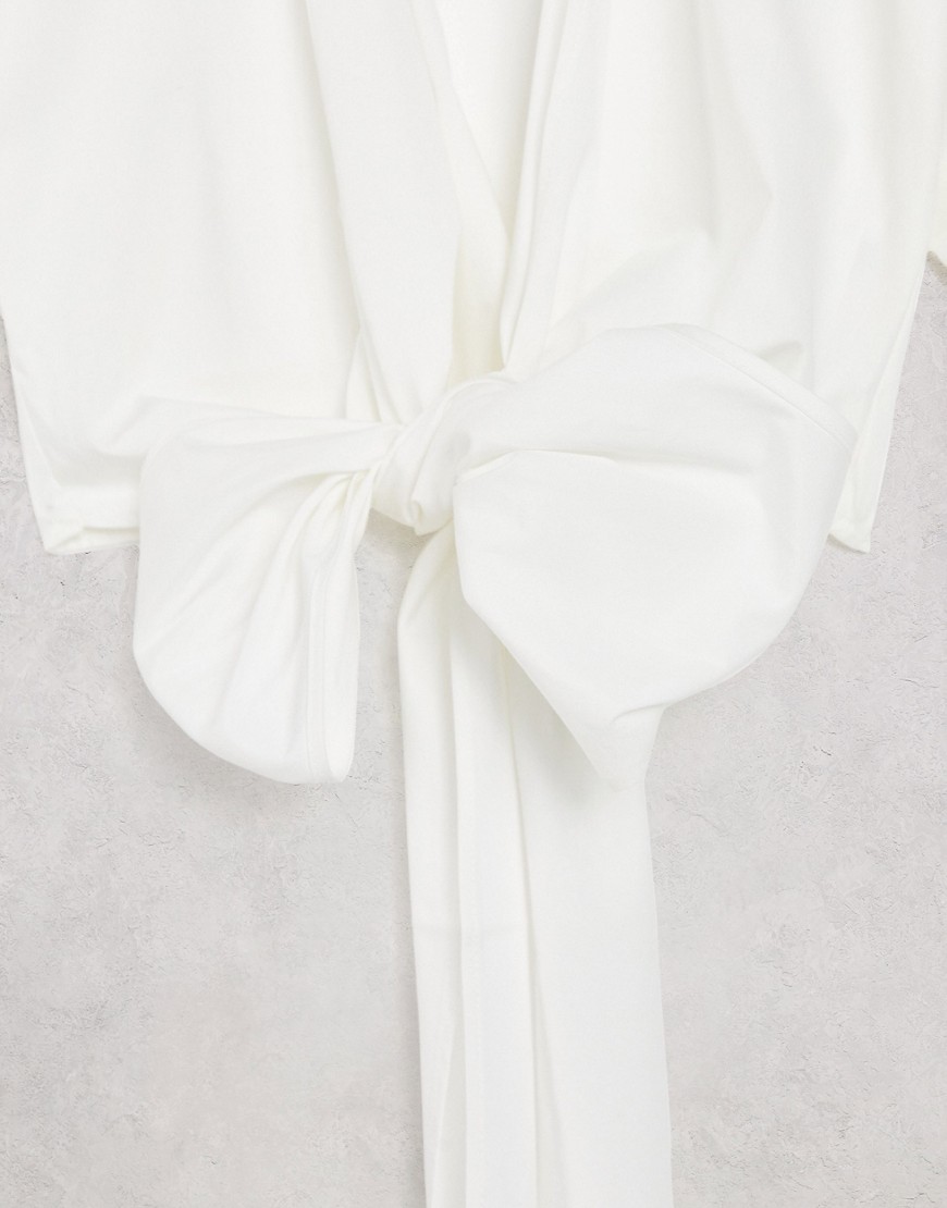 Biała kopertowa damska bluzka krótki fason wiązana 38