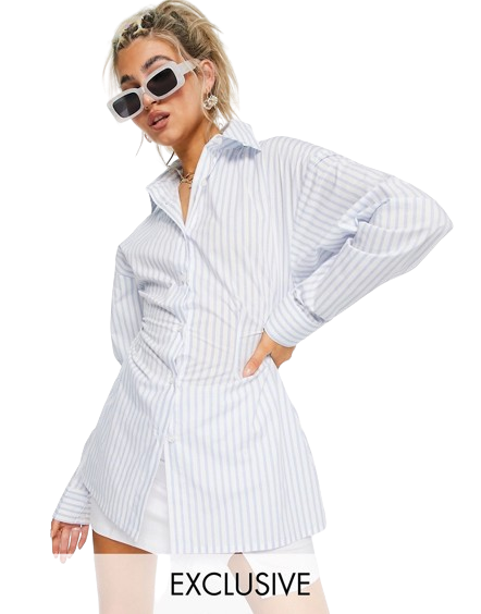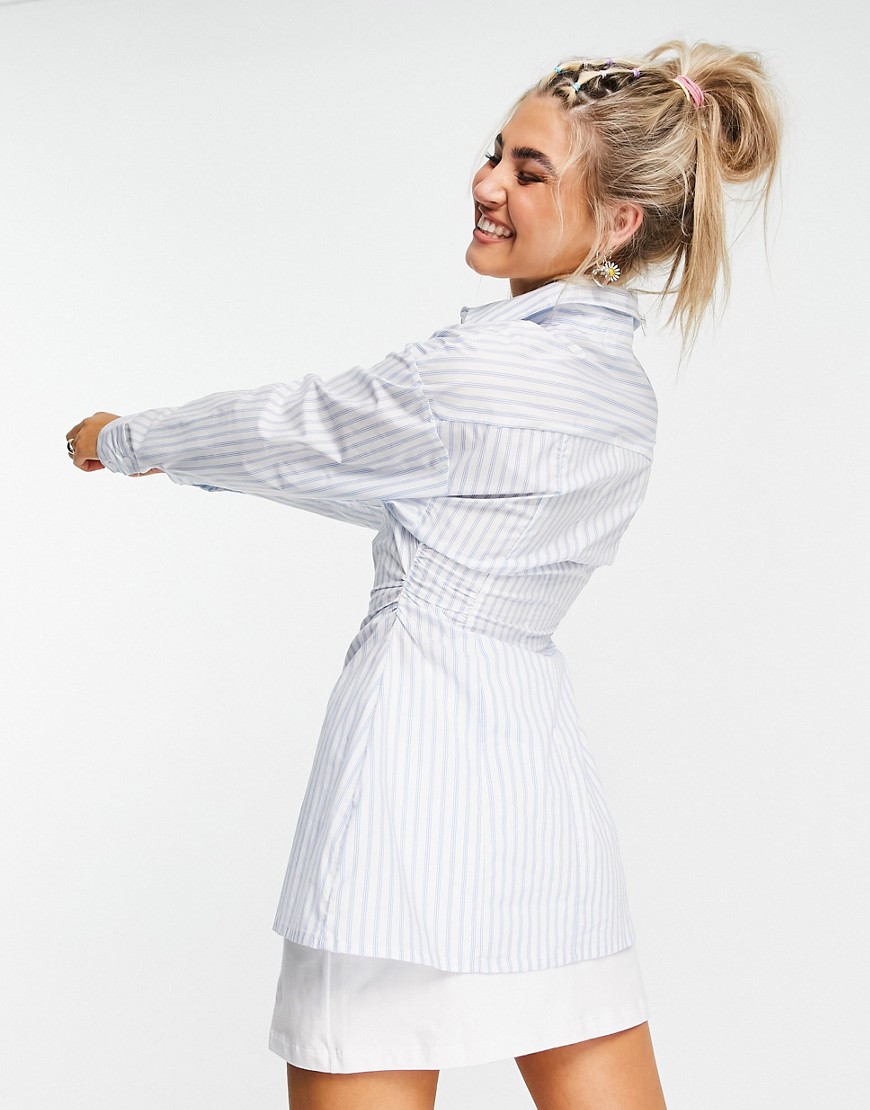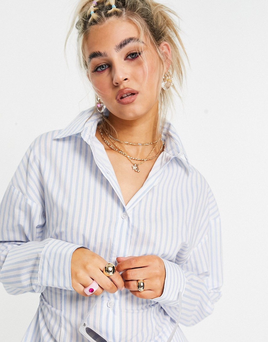 Biała koszula damska taliowana przedłużony fason w paski 36
