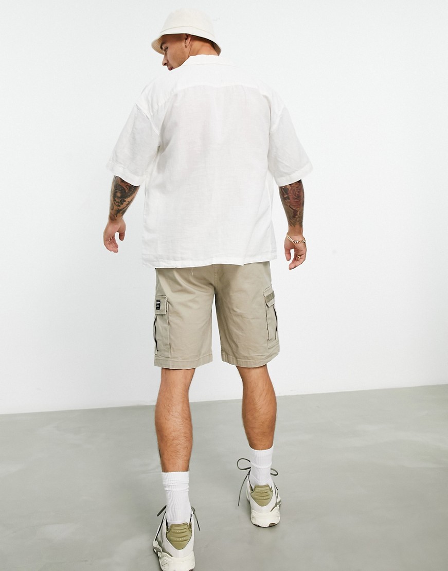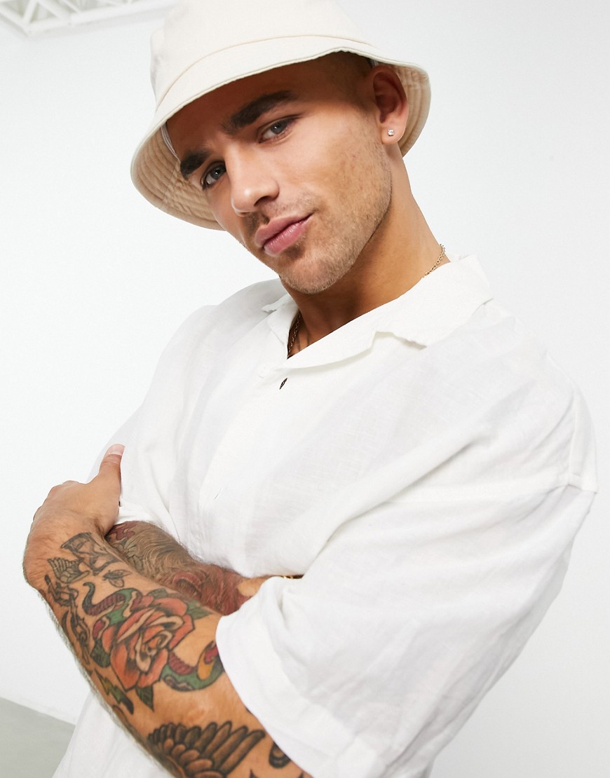 Biała koszula lniana z krótkimi rękawami defekt XL