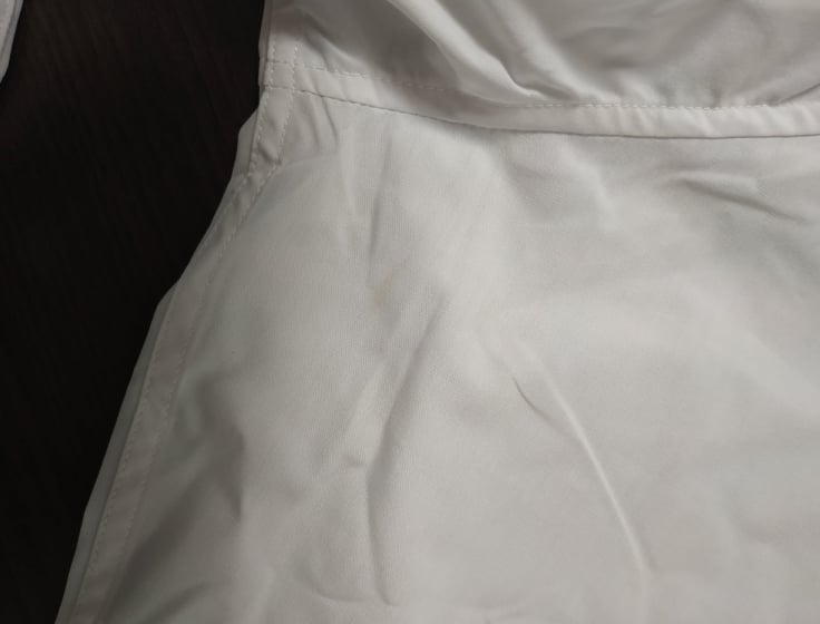 • defekt zabrudzenie na lewym rękawie obok pachy i niewielkie na kołnierzyku