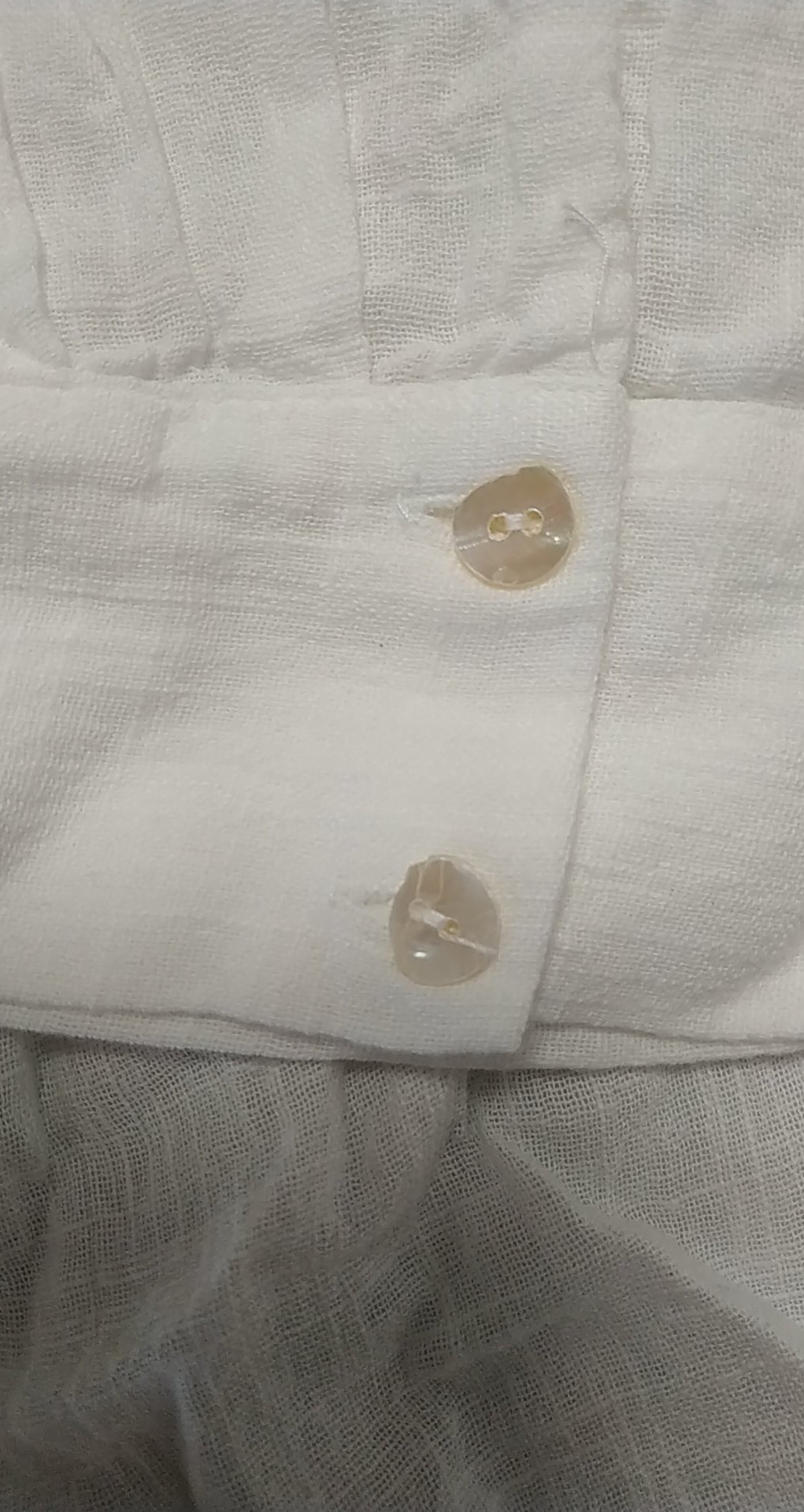 - defekt ułamane guziki przy lewym mankiecie