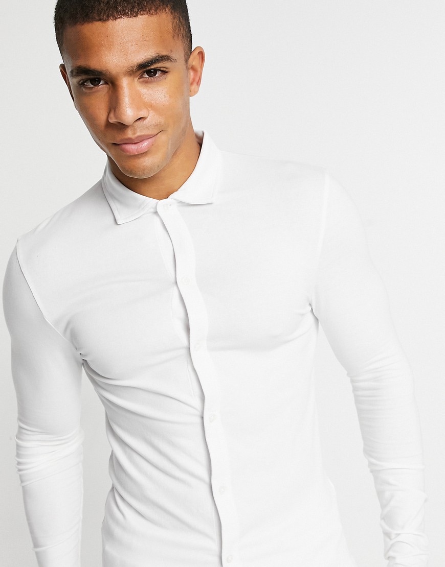 Biała koszula z dżerseju o kroju podkreślającym sylwetkę defekt S