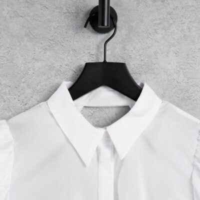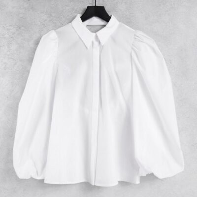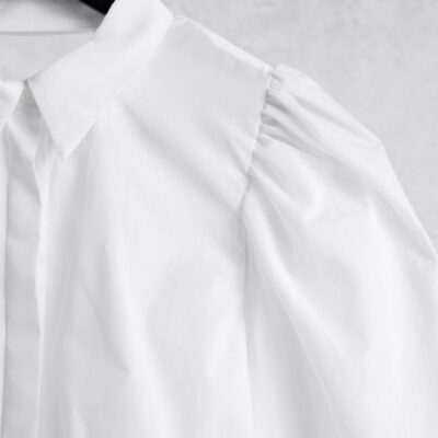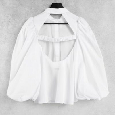 Biała koszula z obszernymi rękawami i odkrytymi plecami 44