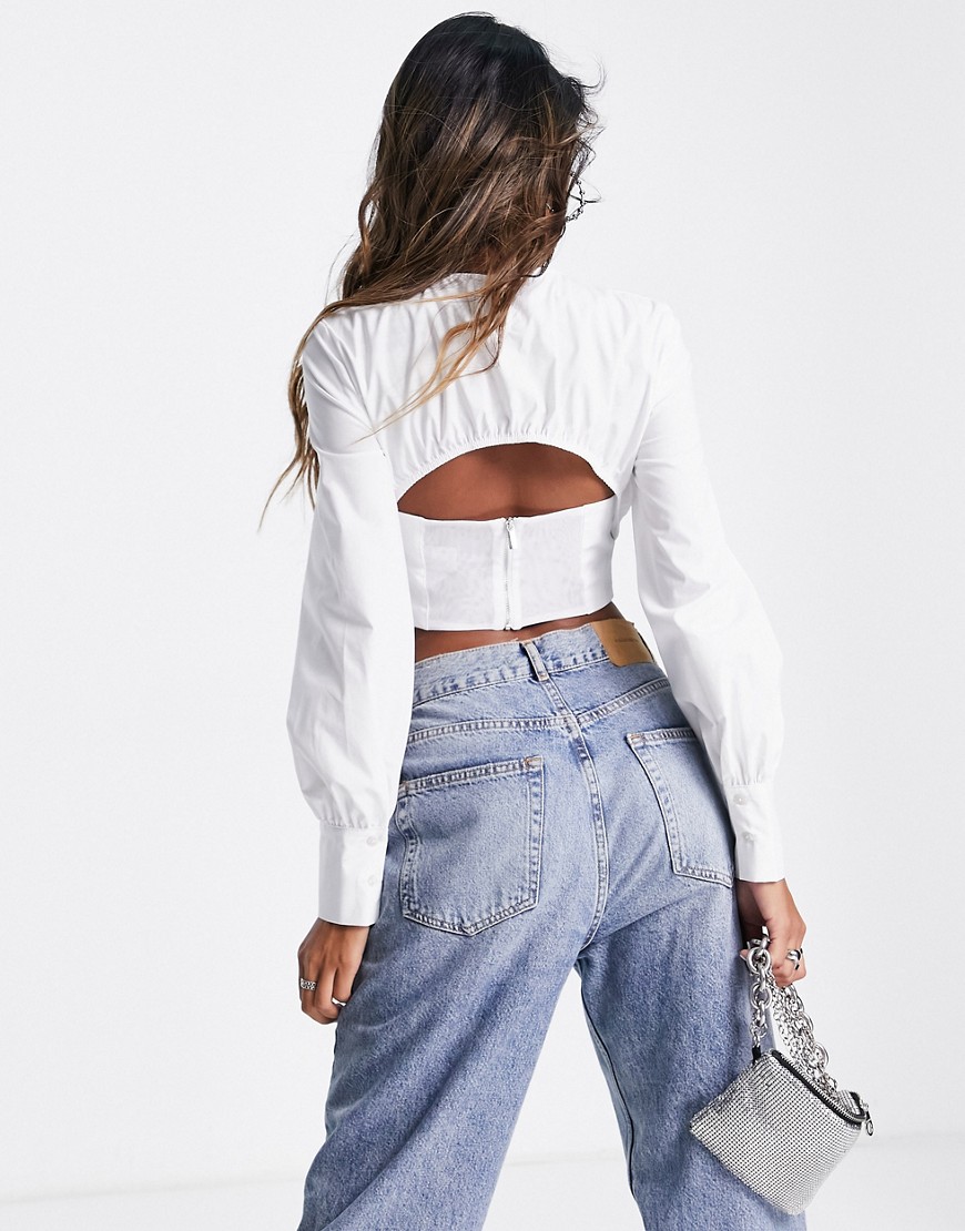 Biała koszula z odkrytymi plecami defekt XL