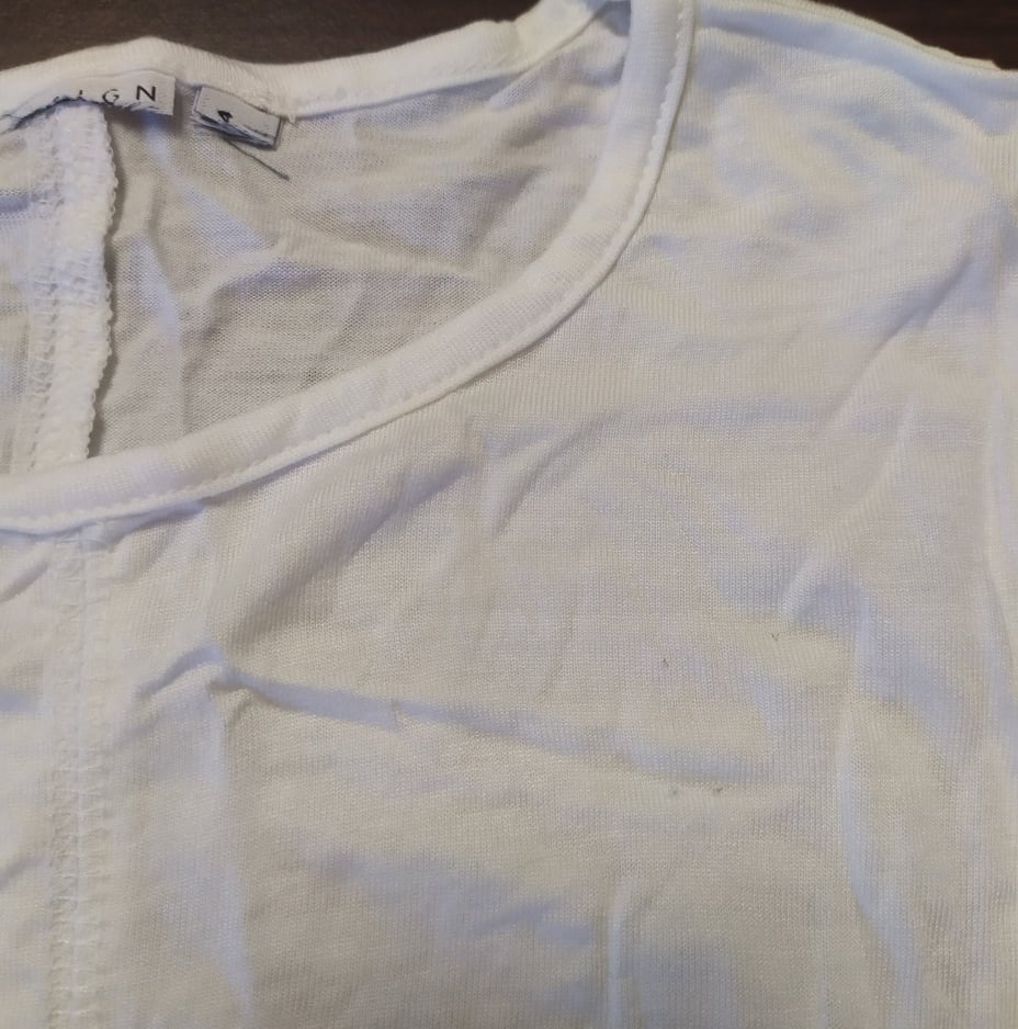 - Defekt : przedziurawiony materiał z przodu koszulki, zdjęcie w galerii produktu