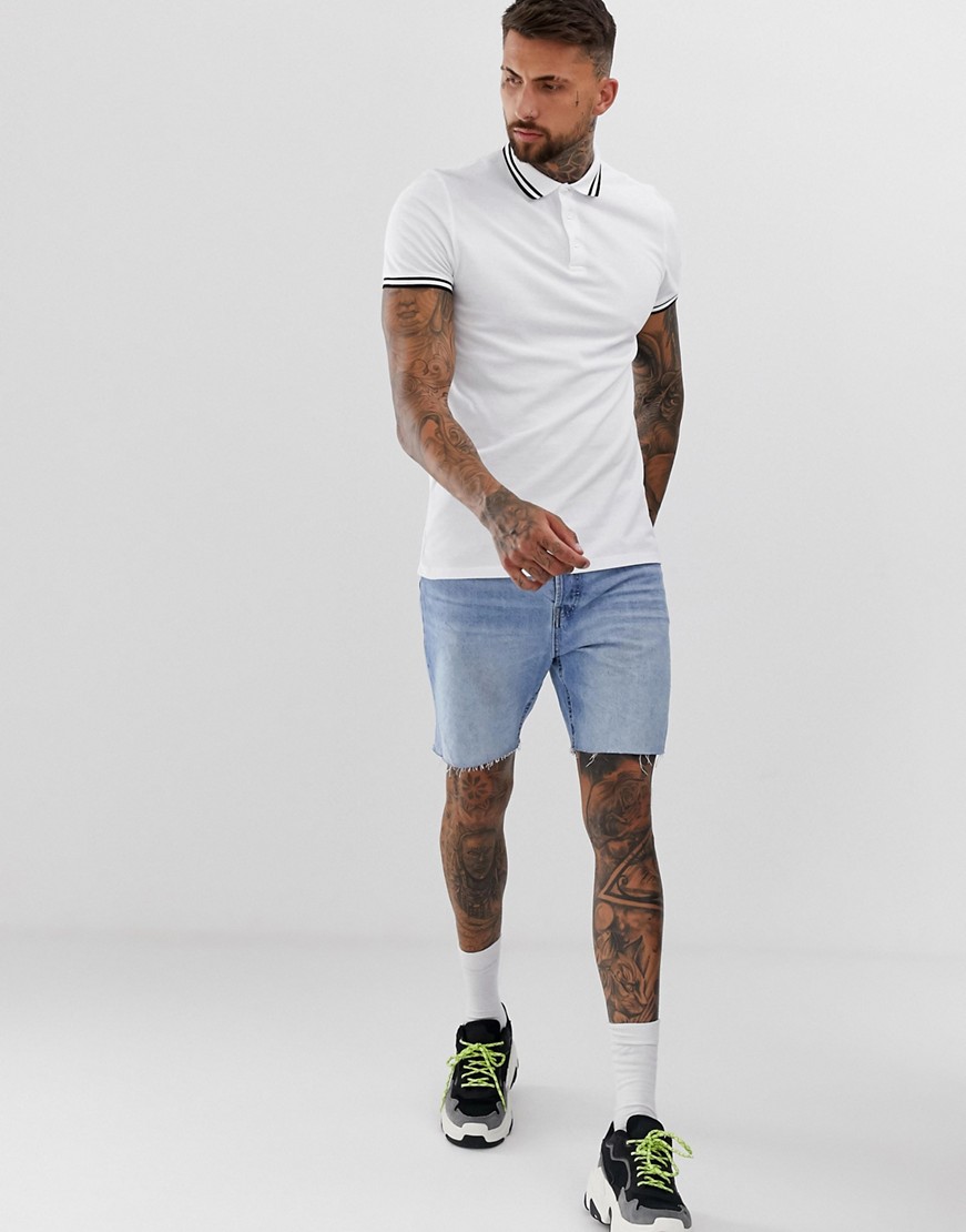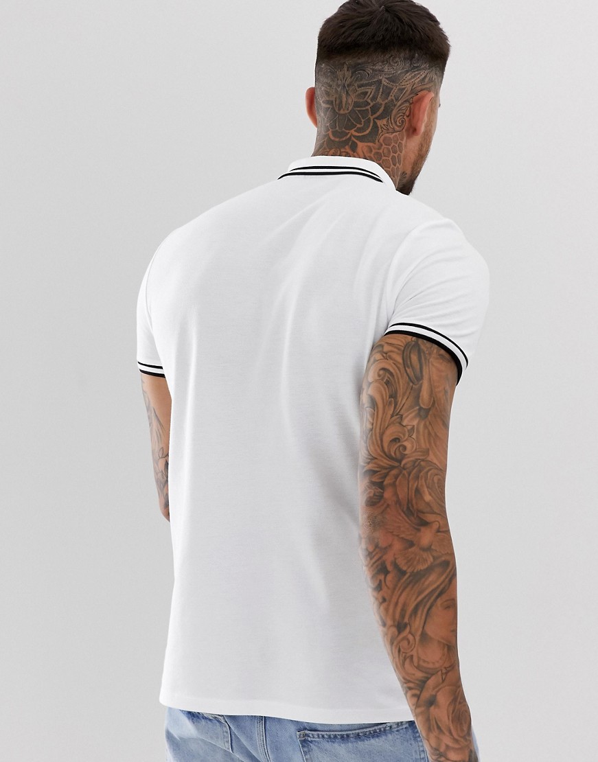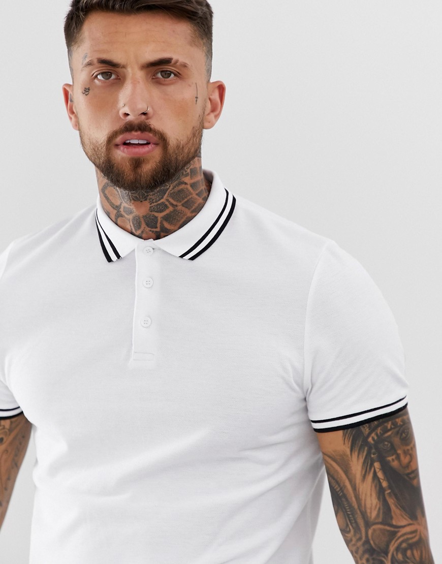 Biała koszulka polo z piki z kontrastowymi paskami defekt XL