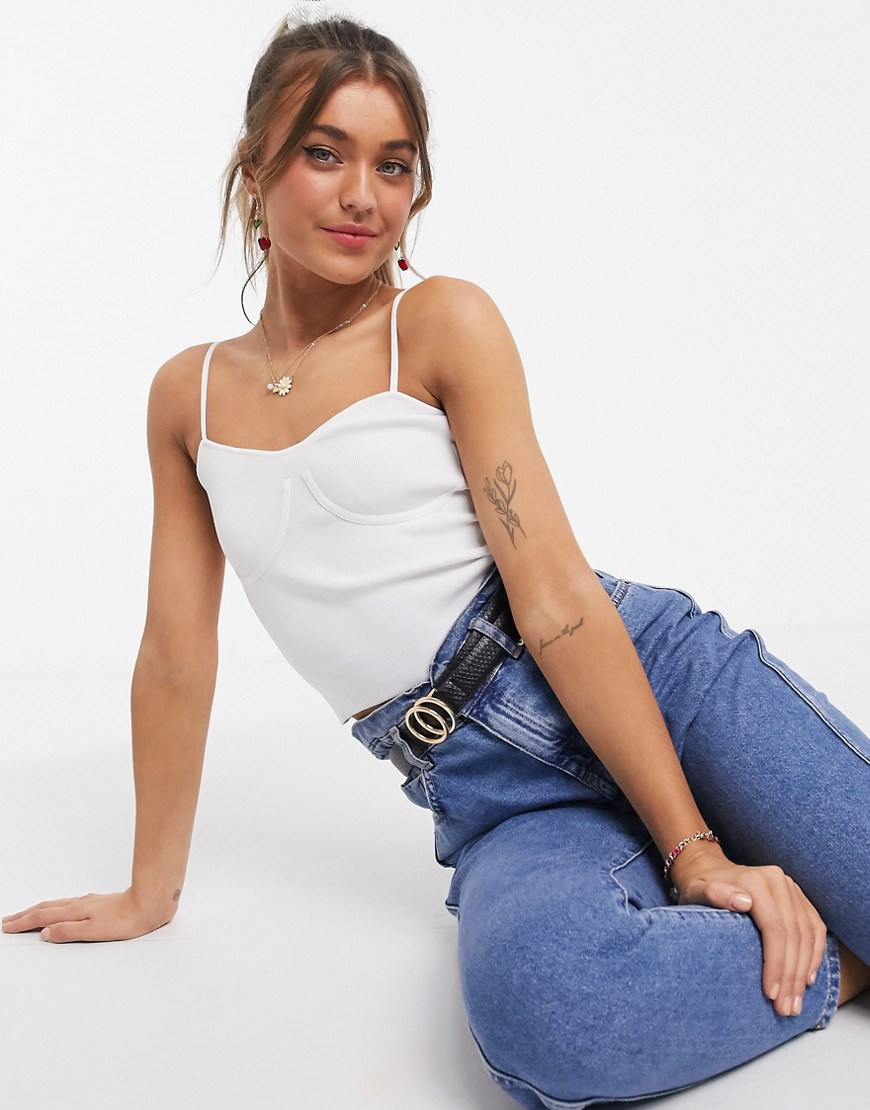 Biała koszulka z gorsetową górą na ramiączkach 44