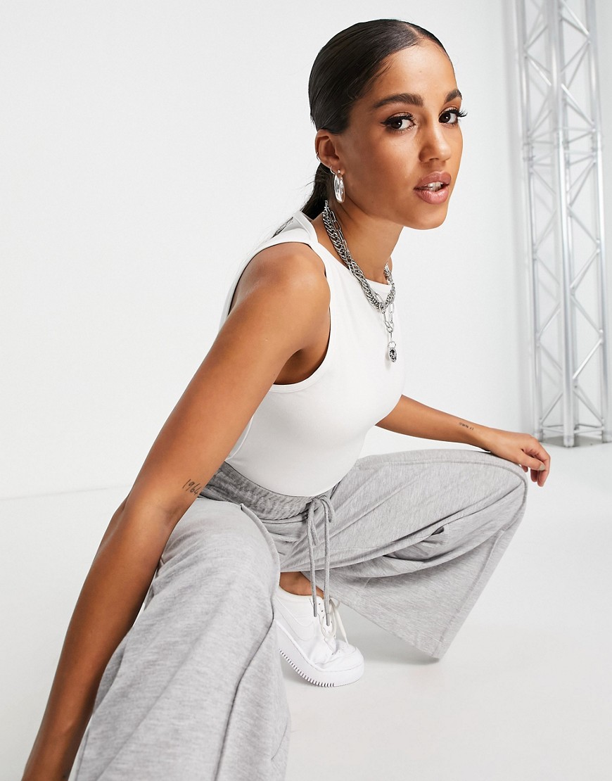 Biała koszulka z wysoko zabudobwanym dekoltem bez rękawów biała 42