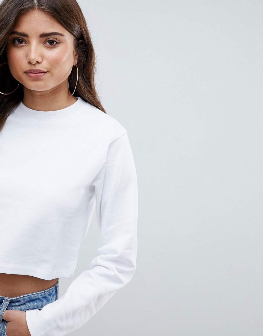 Biała krótka bluza z długim rękawem 38