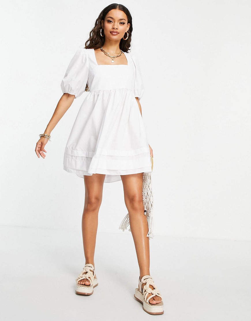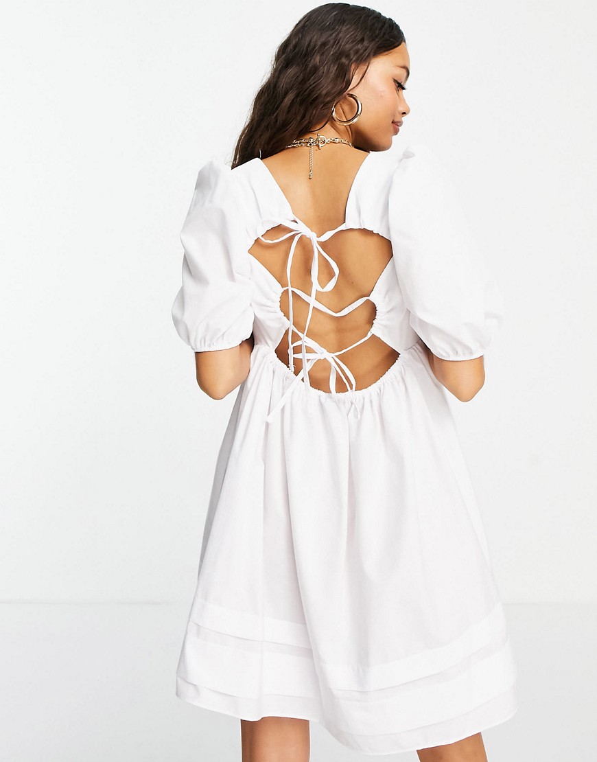 Biała luźna bawełniana sukienka mini z odkrytymi plecami z wiązaniem na lato 36