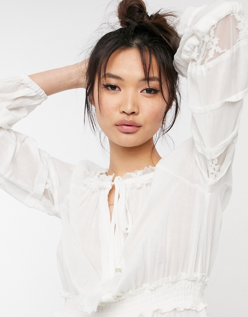 - Okrągły dekolt z ozdobnym wiązaniem