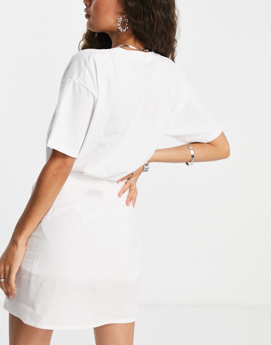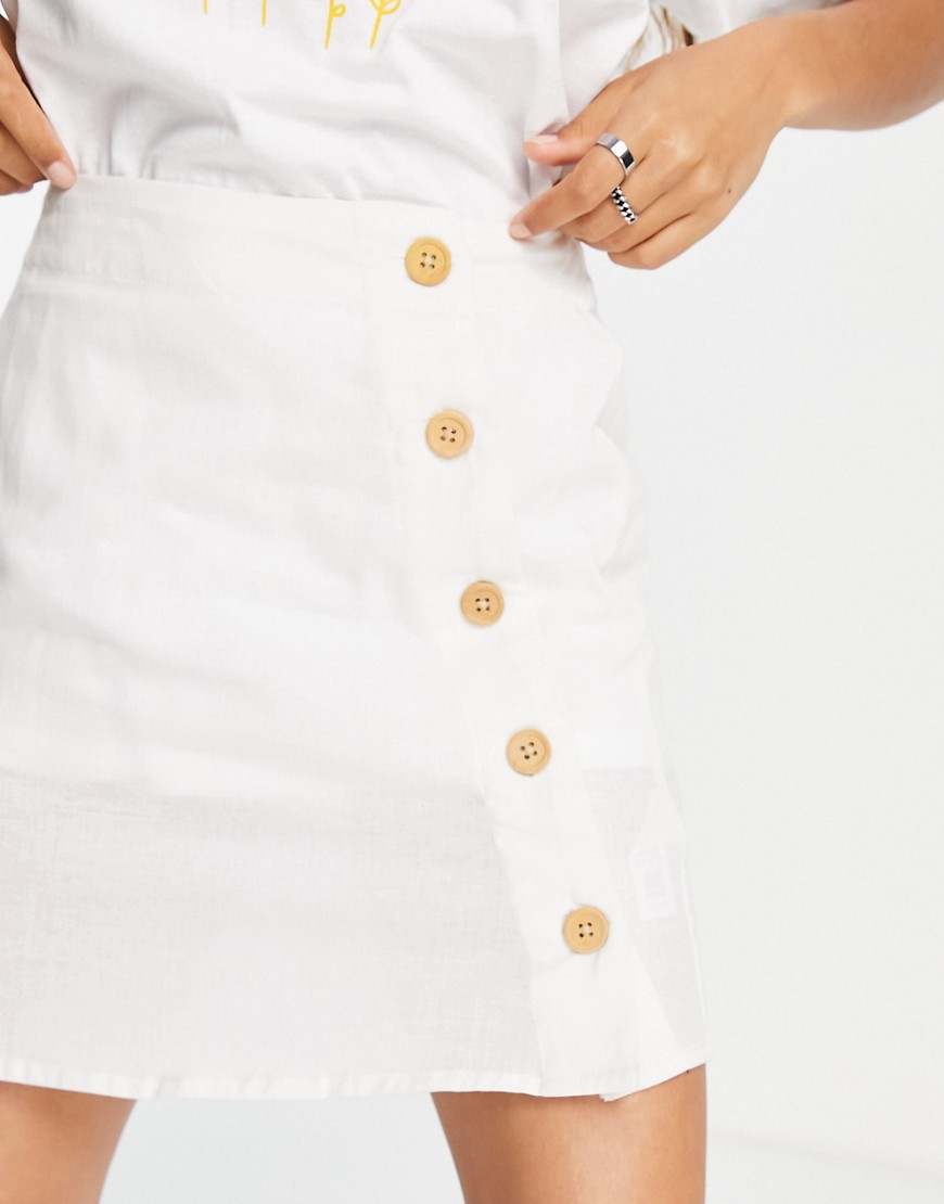Biała spódnica mini z asymetrycznymi guzikami z imitacji lnu XXS