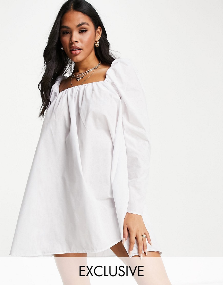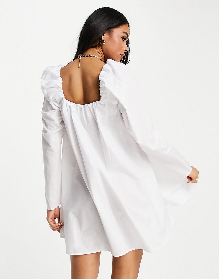Biała sukienka mini z kwadratowym dekoltem na lato 38