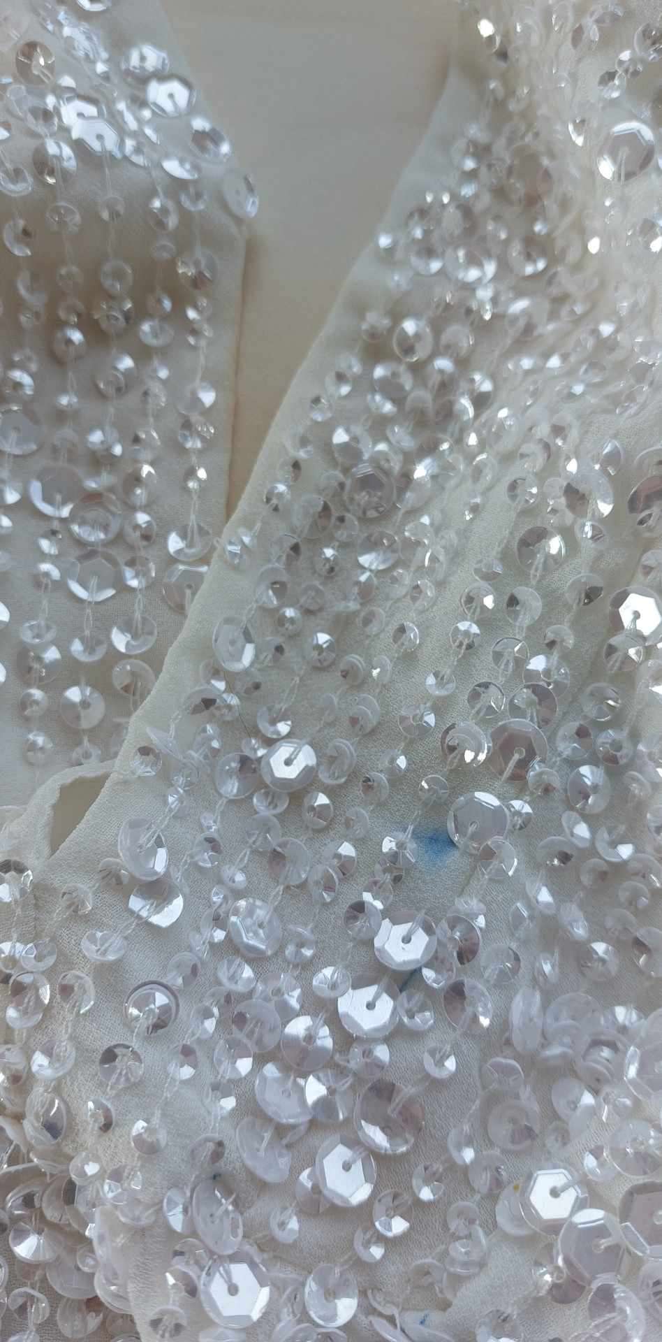 - defekt granatowa plamka z przodu, zabrudzenie od podkładu przy dekolcie, zdjęcia w galerii produktu