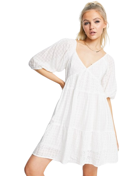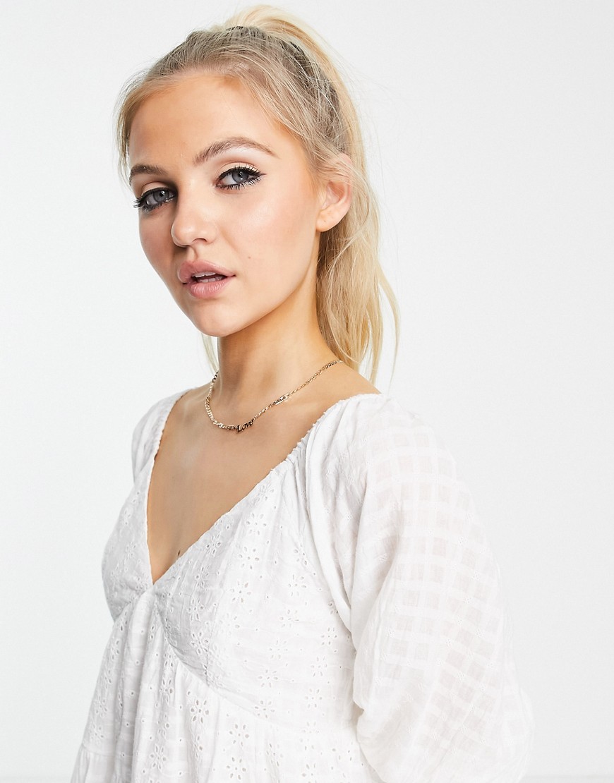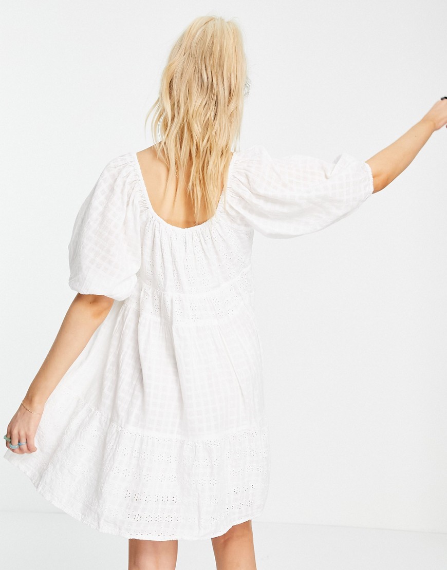Biała warstwowa sukienka mini z haftem angielkim i szerokimi rękawami 34