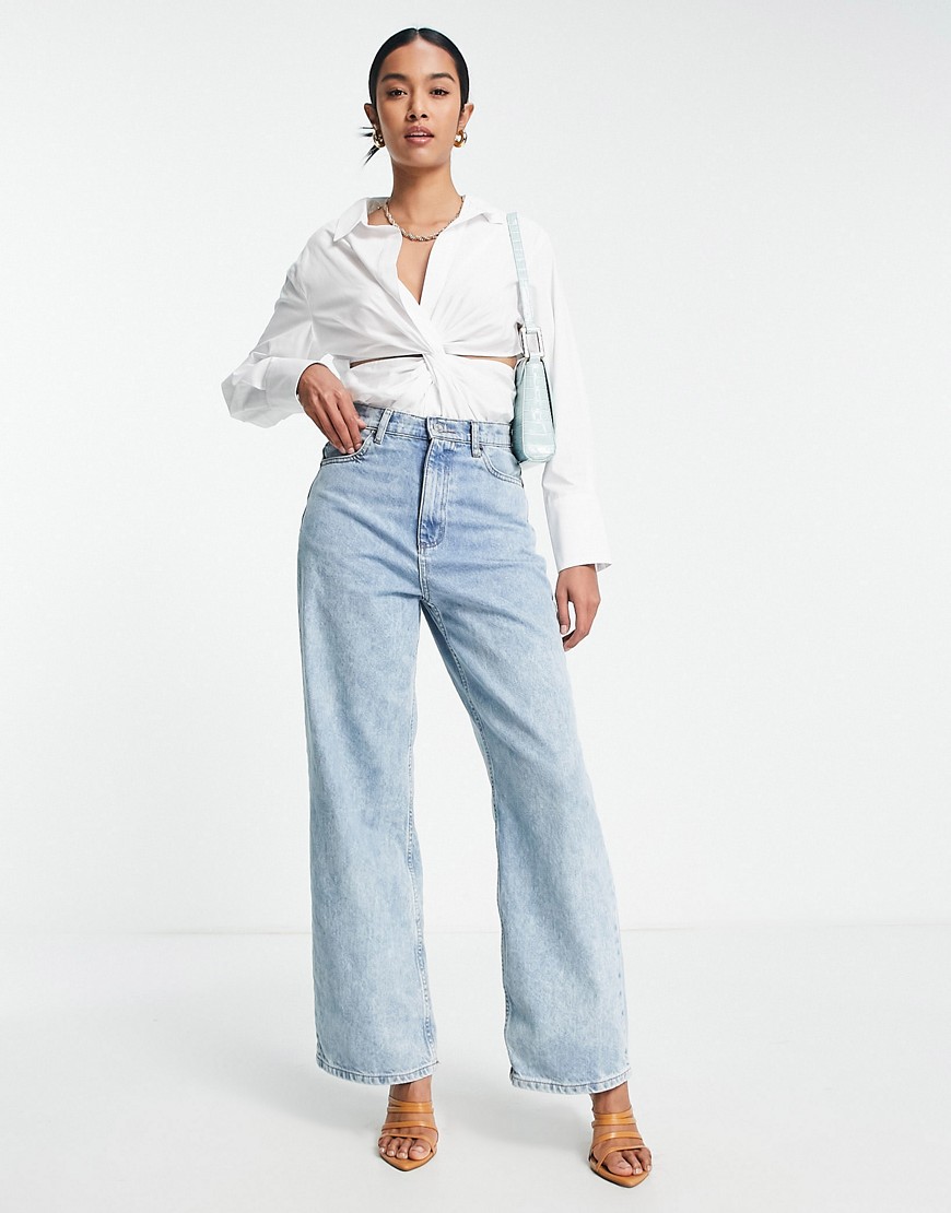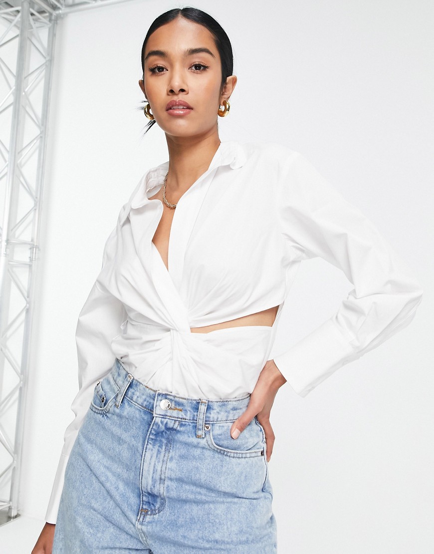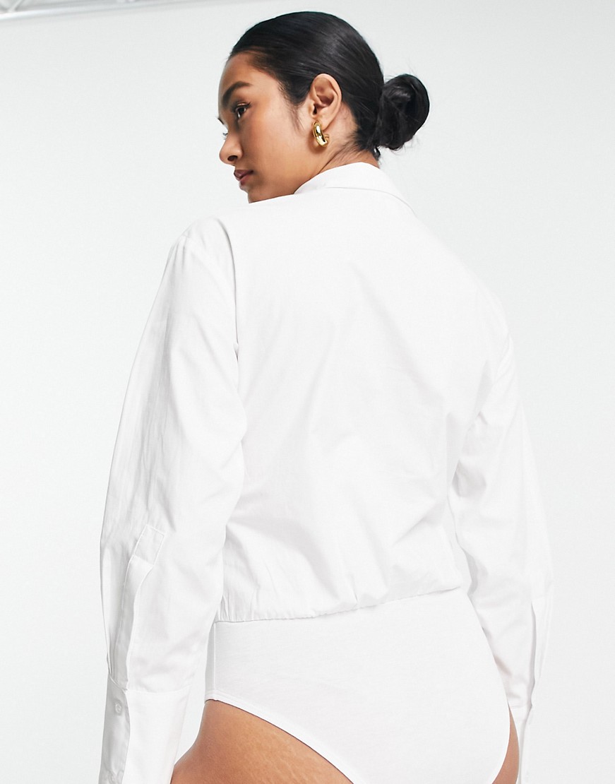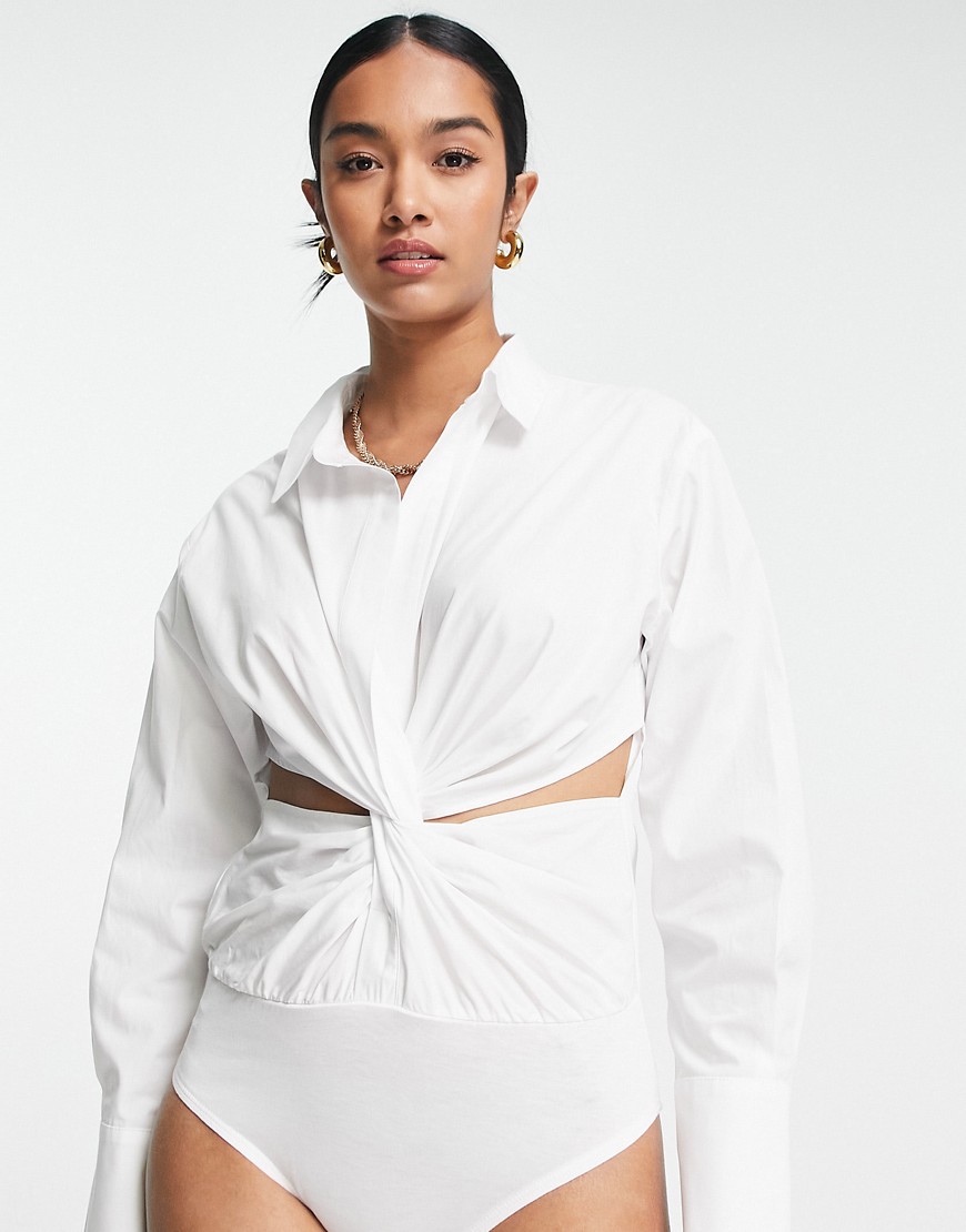 Białe body o fasonie koszuli ze skręconym przodem 40