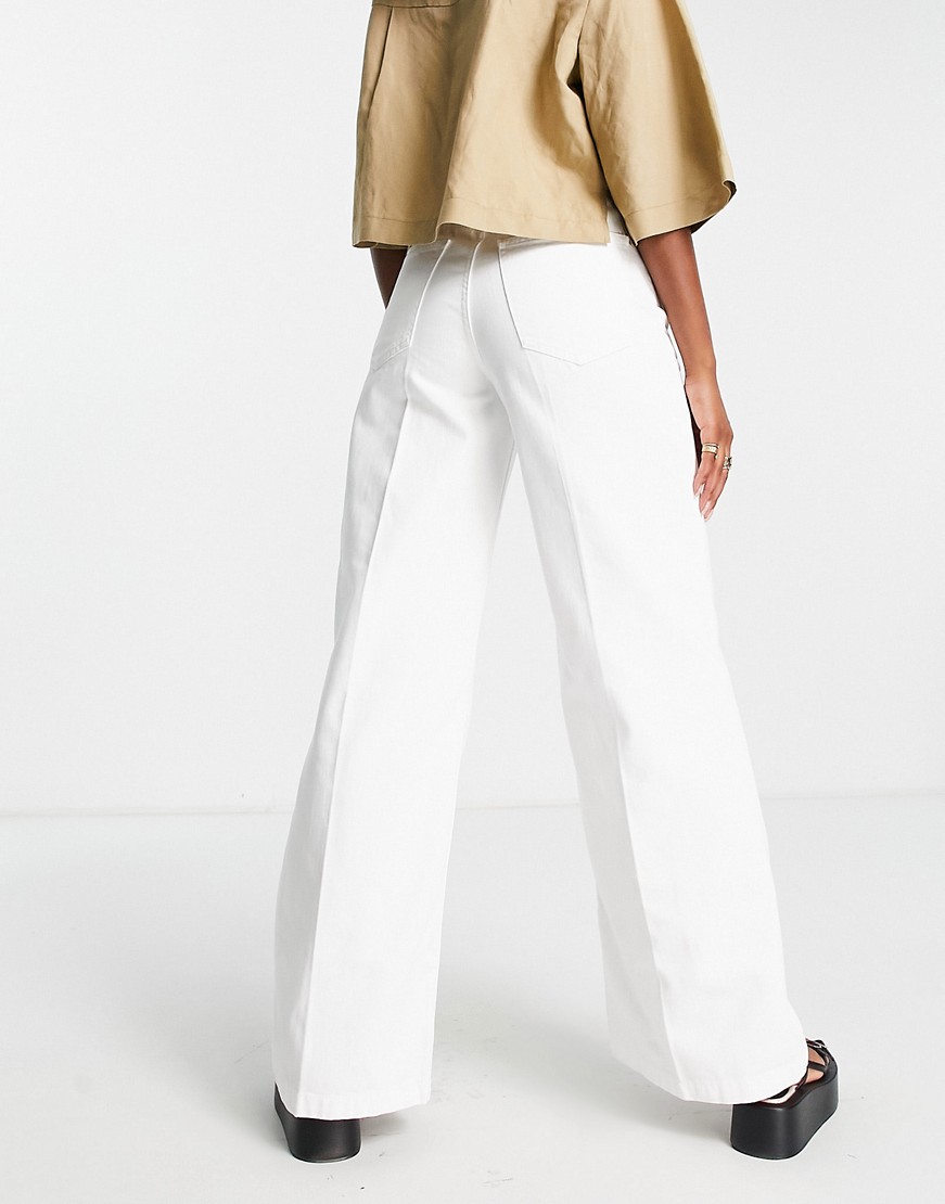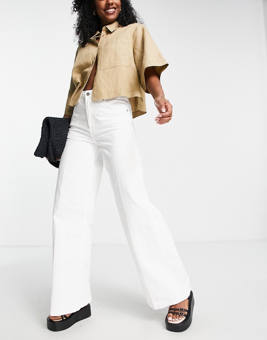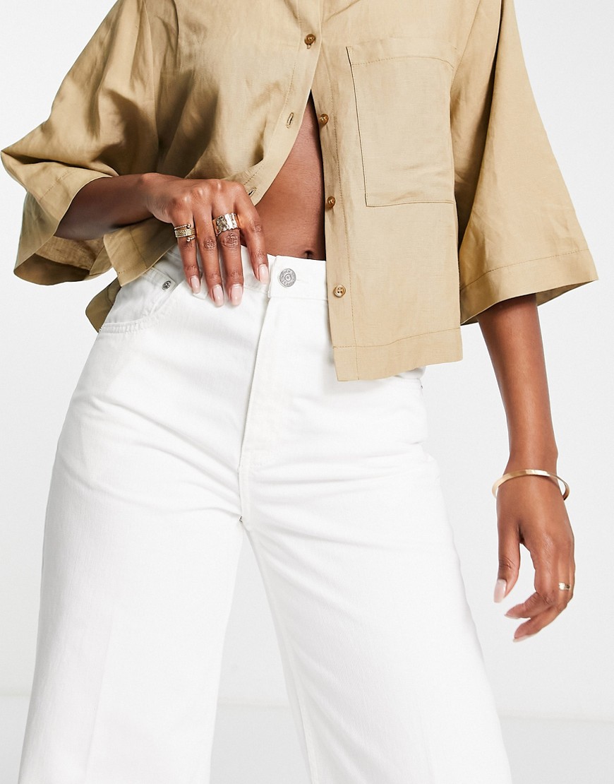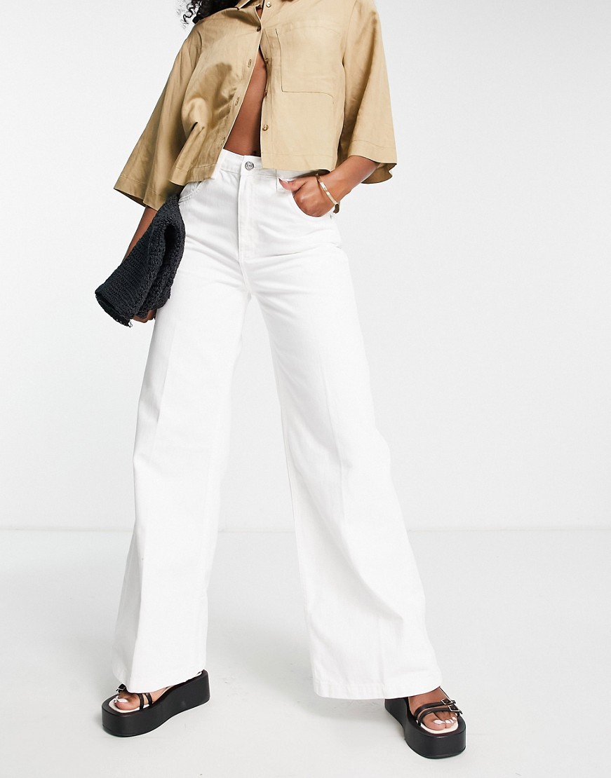 Białe damskie jeansy podwyższony stan wide leg defekt 42