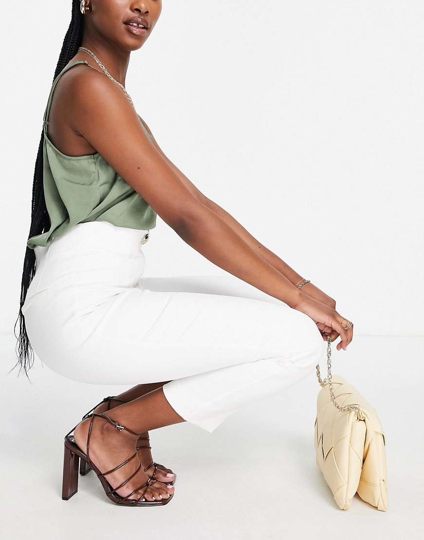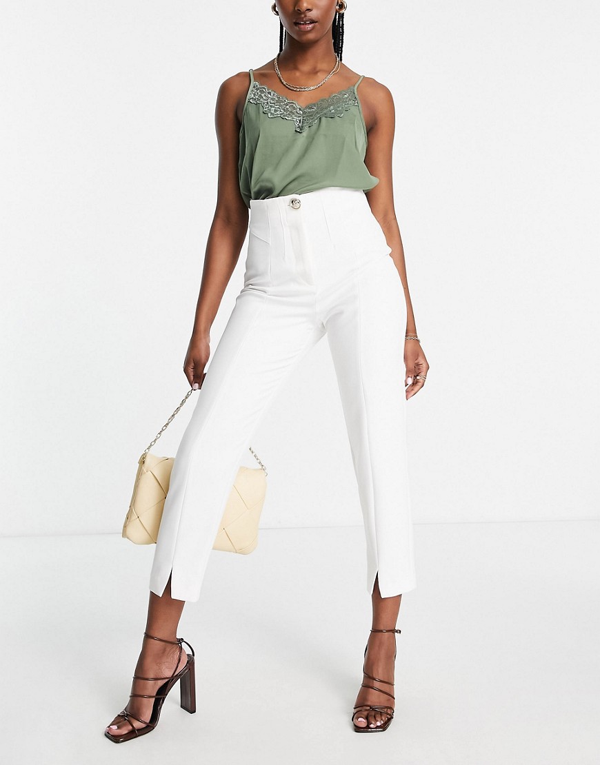 Białe dopasowane spodnie cygaretki z rozcięciami z przodu defekt 36
