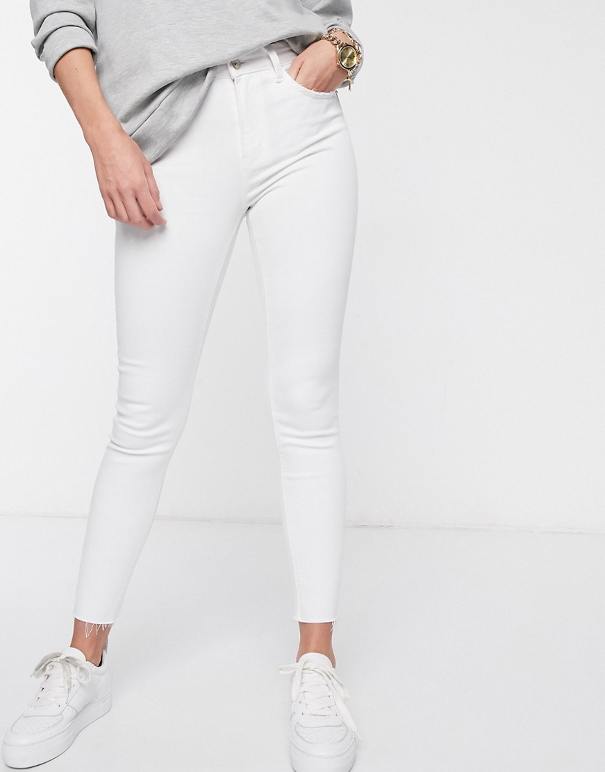 Białe obcisłe jeansy z podwyższonym stanem 44