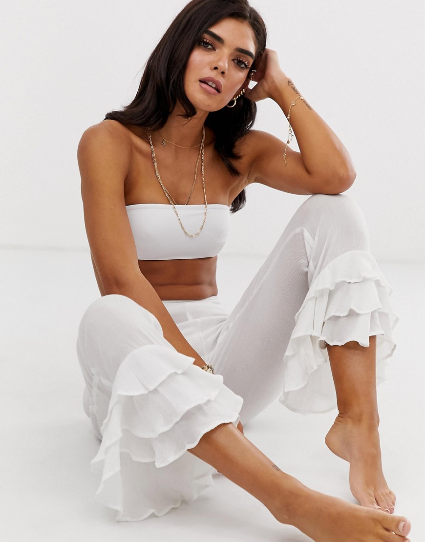 Białe spodnie plażowe z falbankami defekt 40