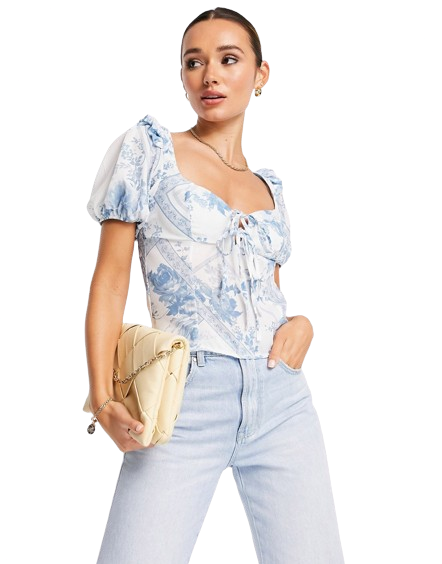 Biało-niebieska bluzka w kwiaty z krótkimi 38
