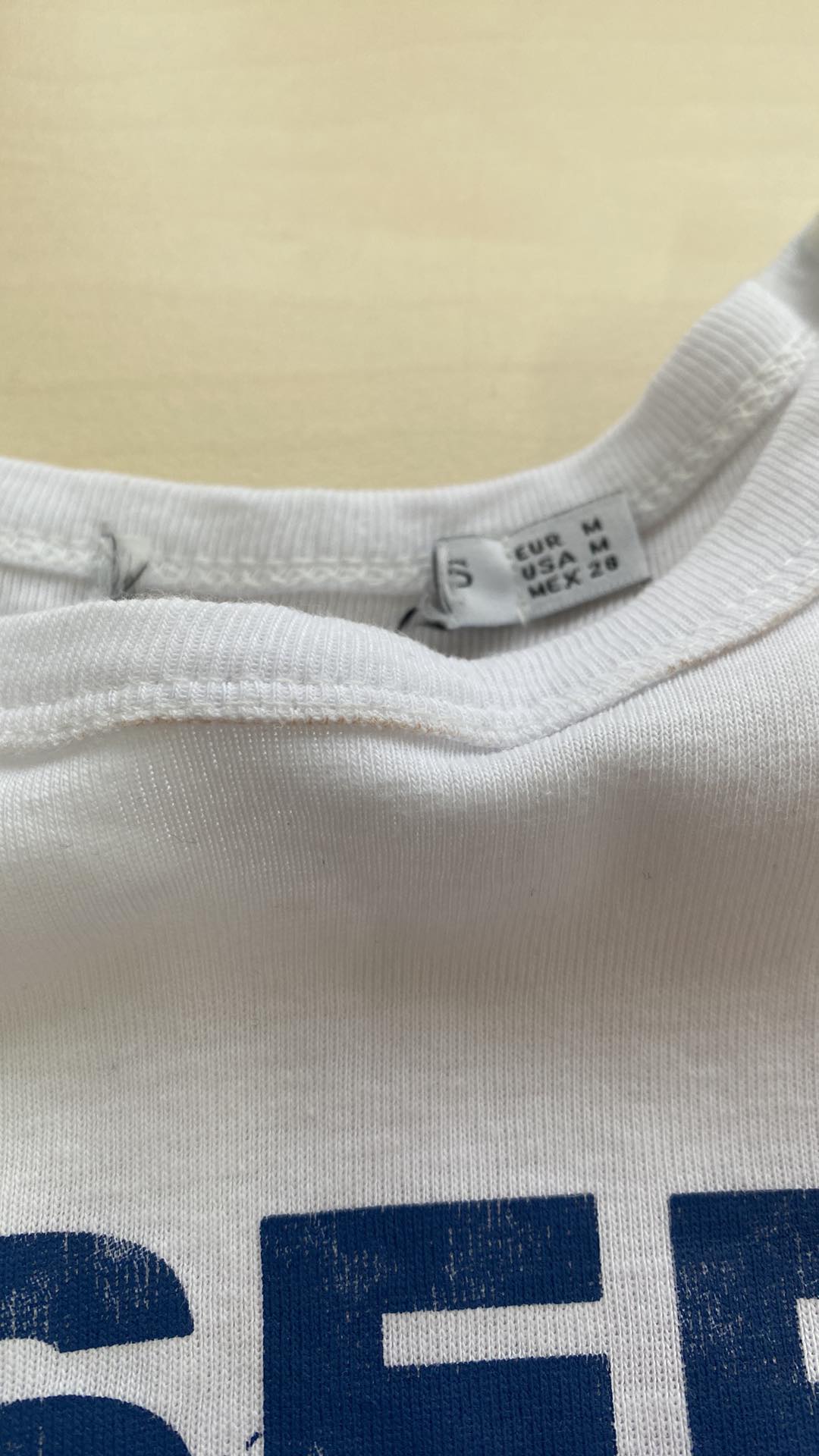 - używany: lekko zabrudzony dekolt oraz „wytarty” nadruk przód