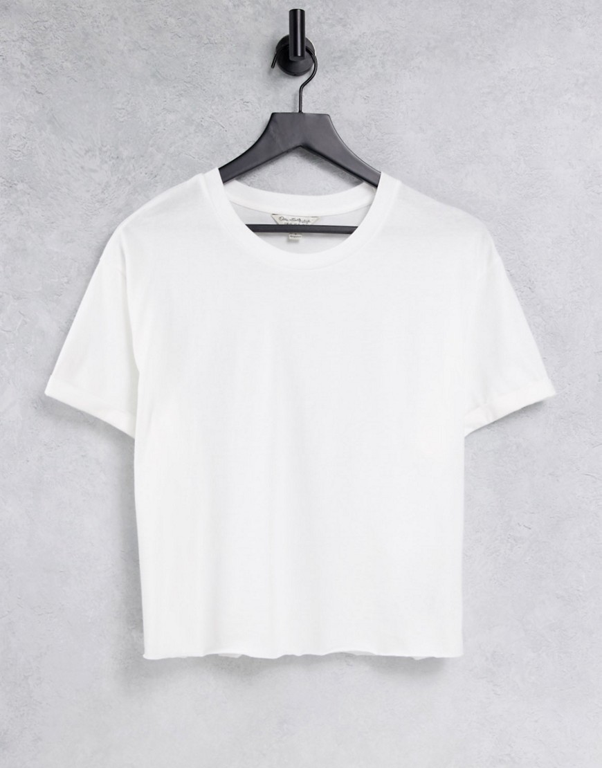 Biały krótki T-shirt z podwiniętymi mankietami defekt 36