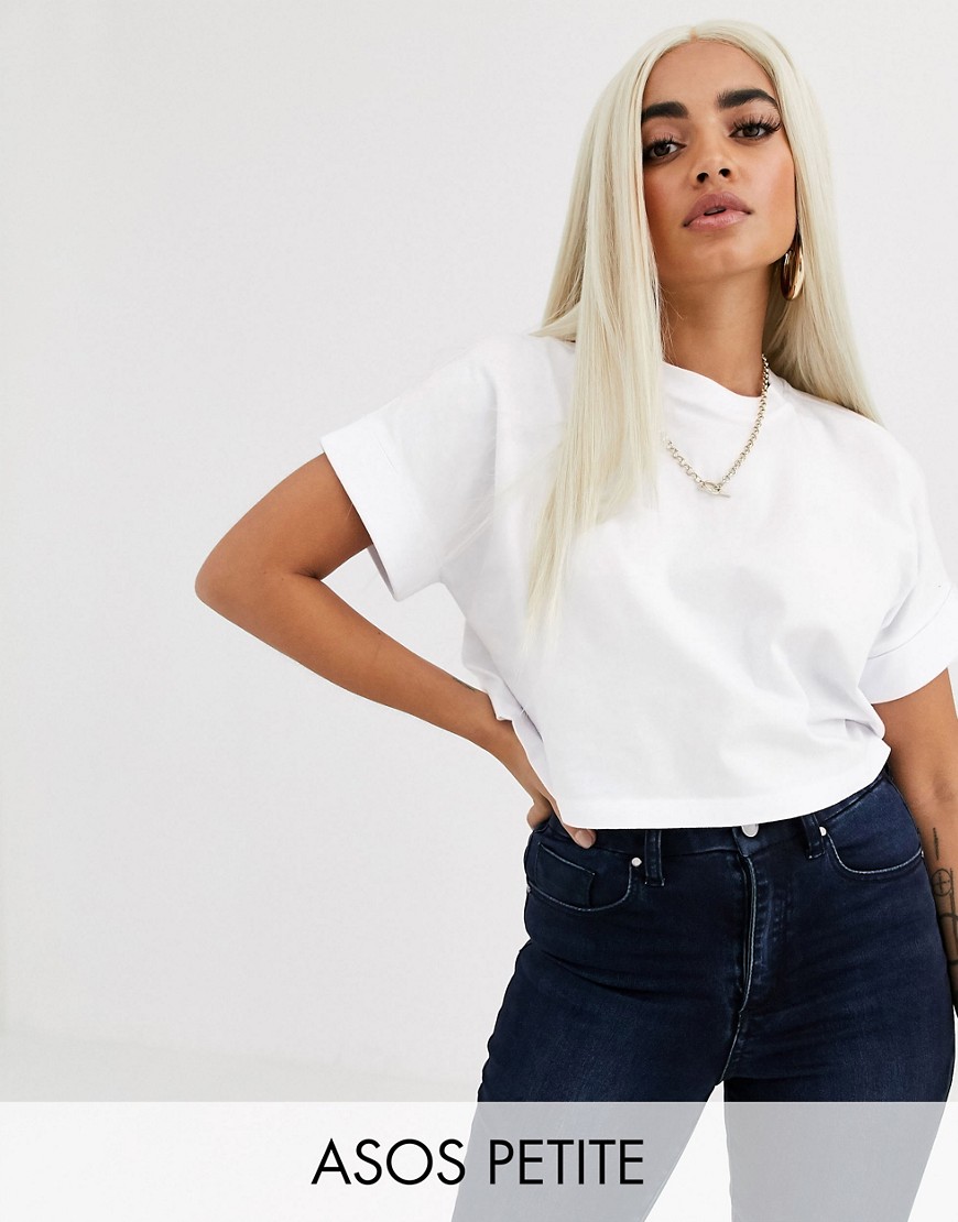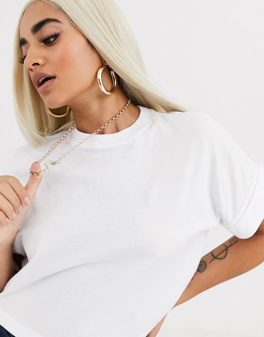 Biały krótki t-shirt z podwiniętymi rękawami basic 44
