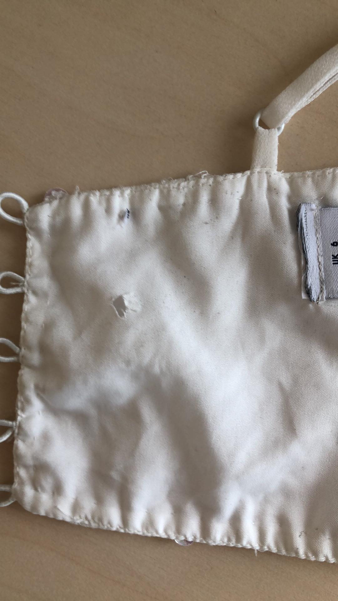 - Defekt zabrudzenie wewnątrz całość oraz ramiączka, mała dziurka wewnątrz koło zapięcia