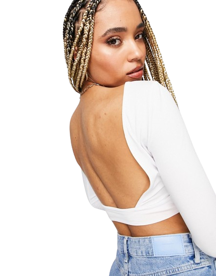 Biały krótki top z długim rękawem i odsłoniętymi plecami 32