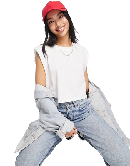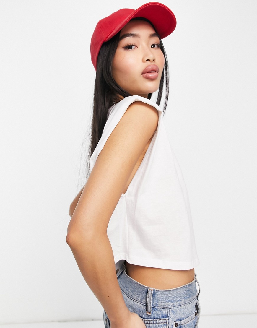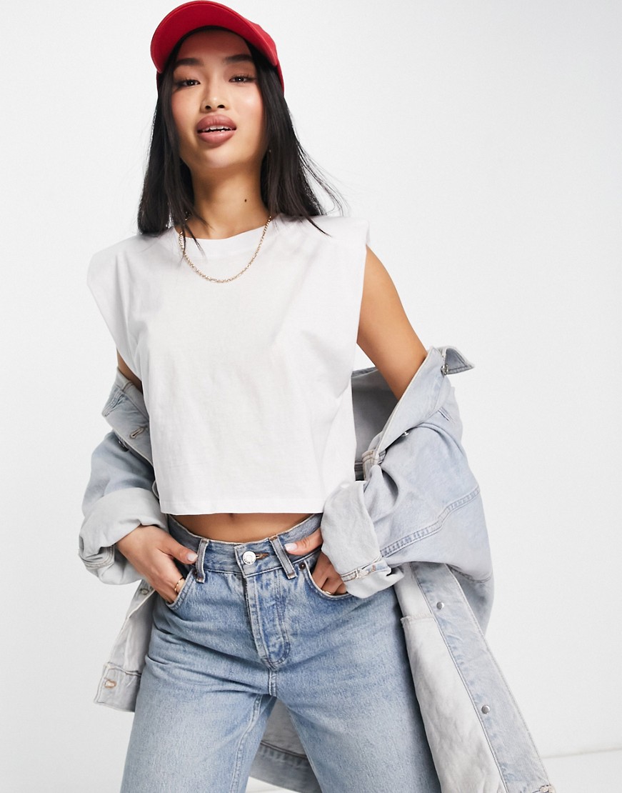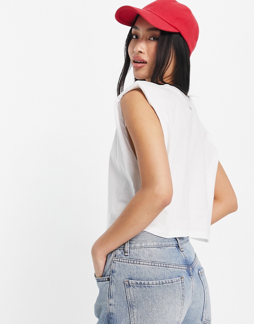 Biały podkreślający sylwetkę top bez rękawów z poduszkami na ramionach S