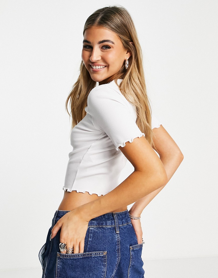 Biały prążkowany bawełniany T-shirt z falistym wykończeniem 36