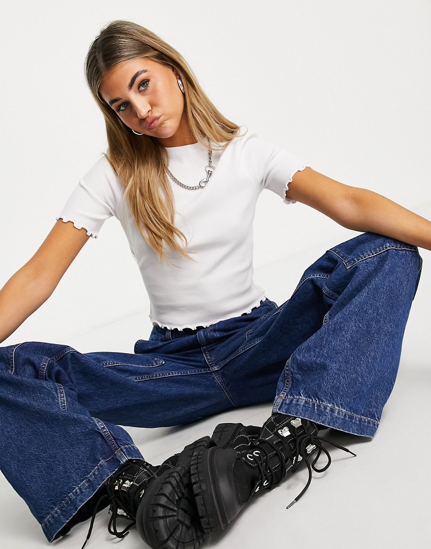Biały prążkowany t-shirt karbowanym brzegiem 34