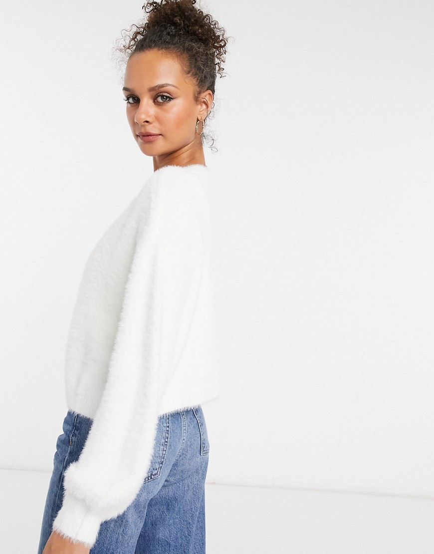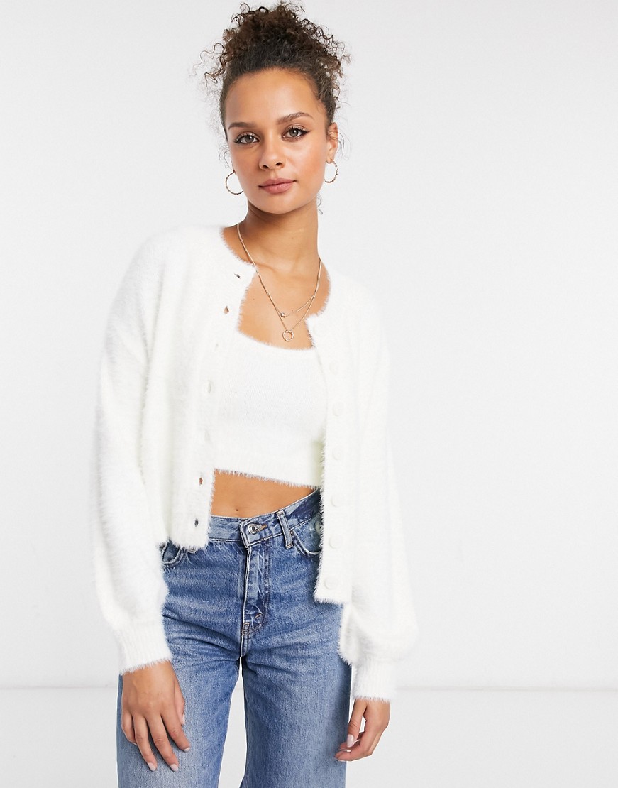 Biały puszysty kardigan z dzianiny M