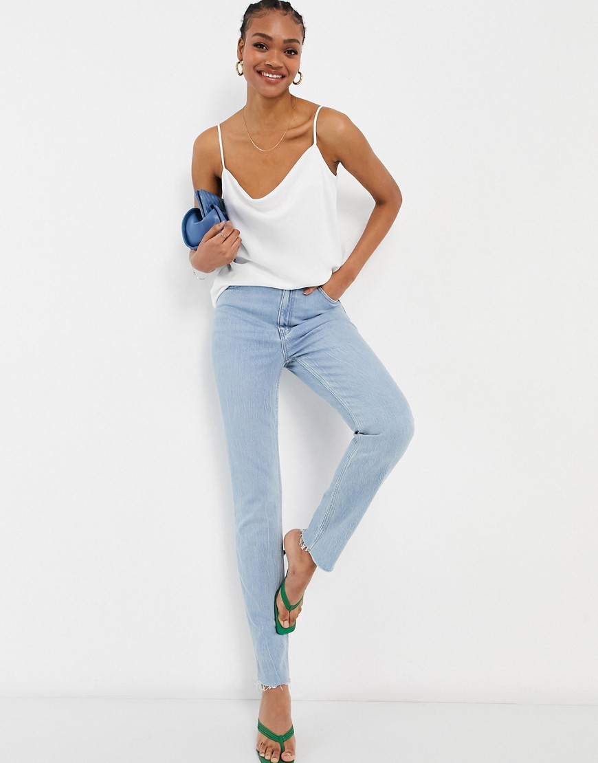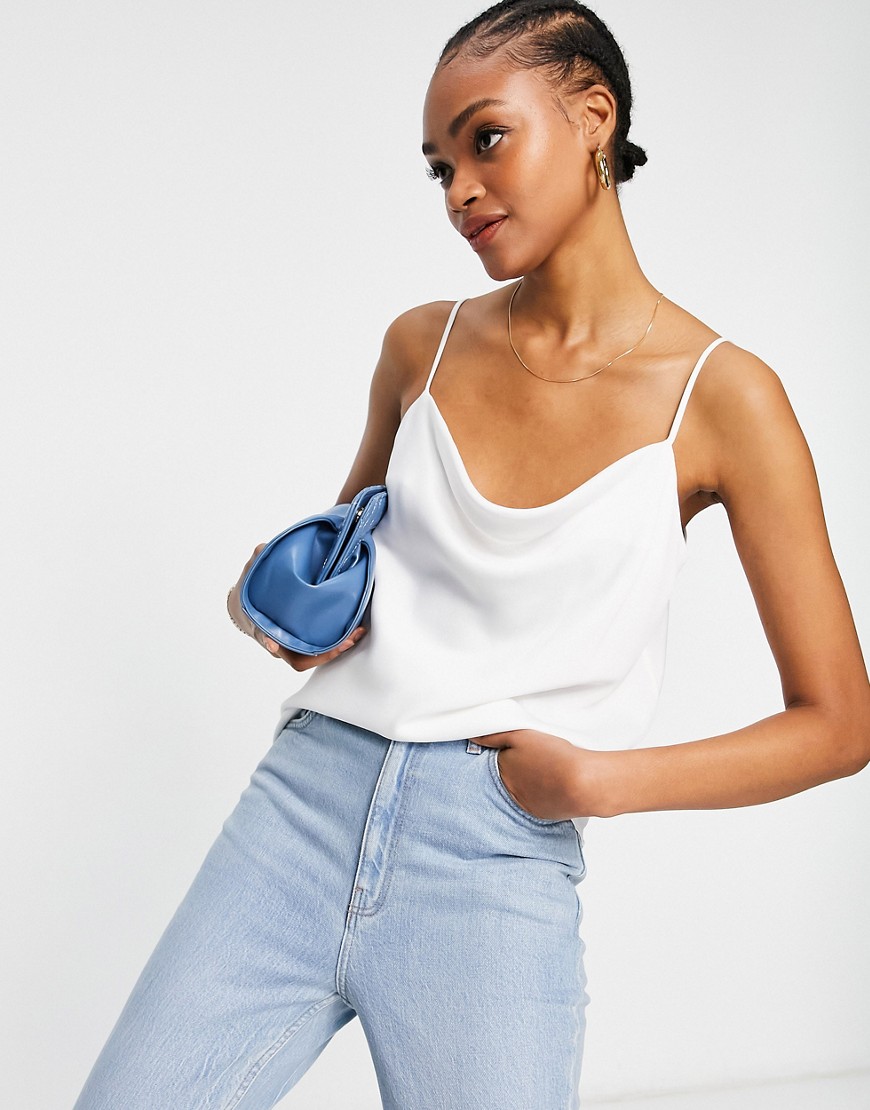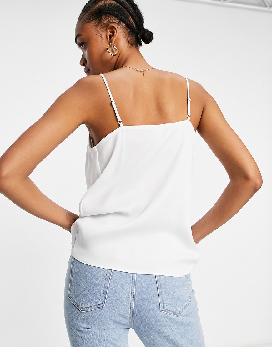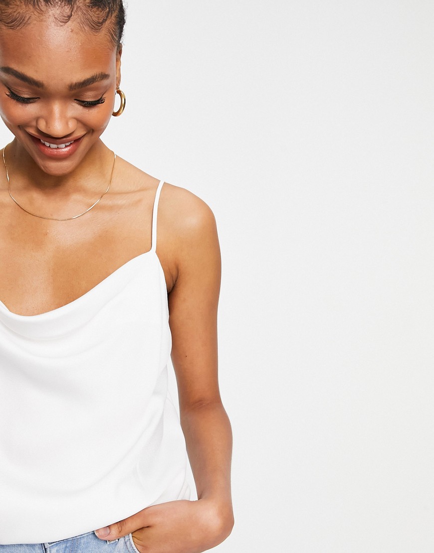 Biały satynowy top na ramiączkach z lejącym dekoltem 42