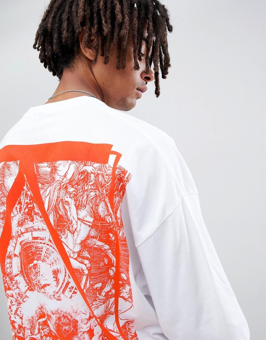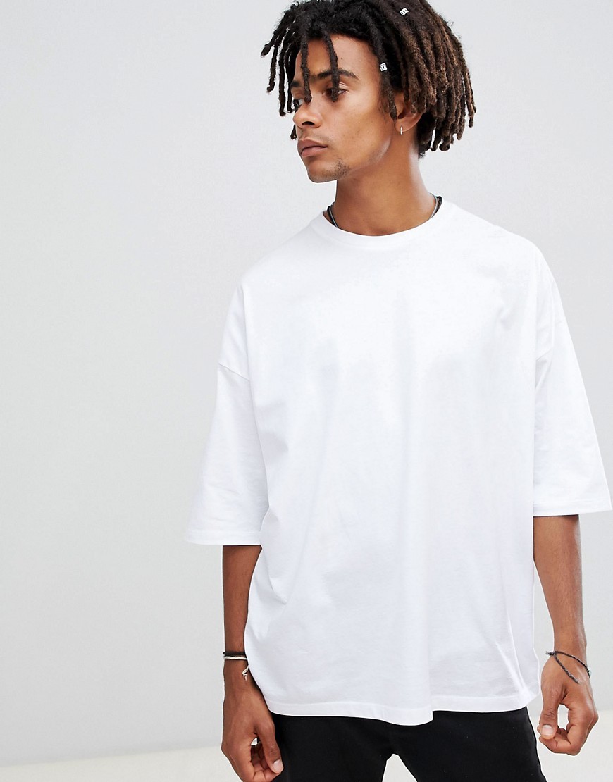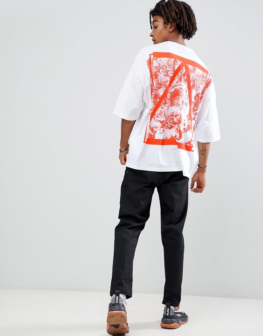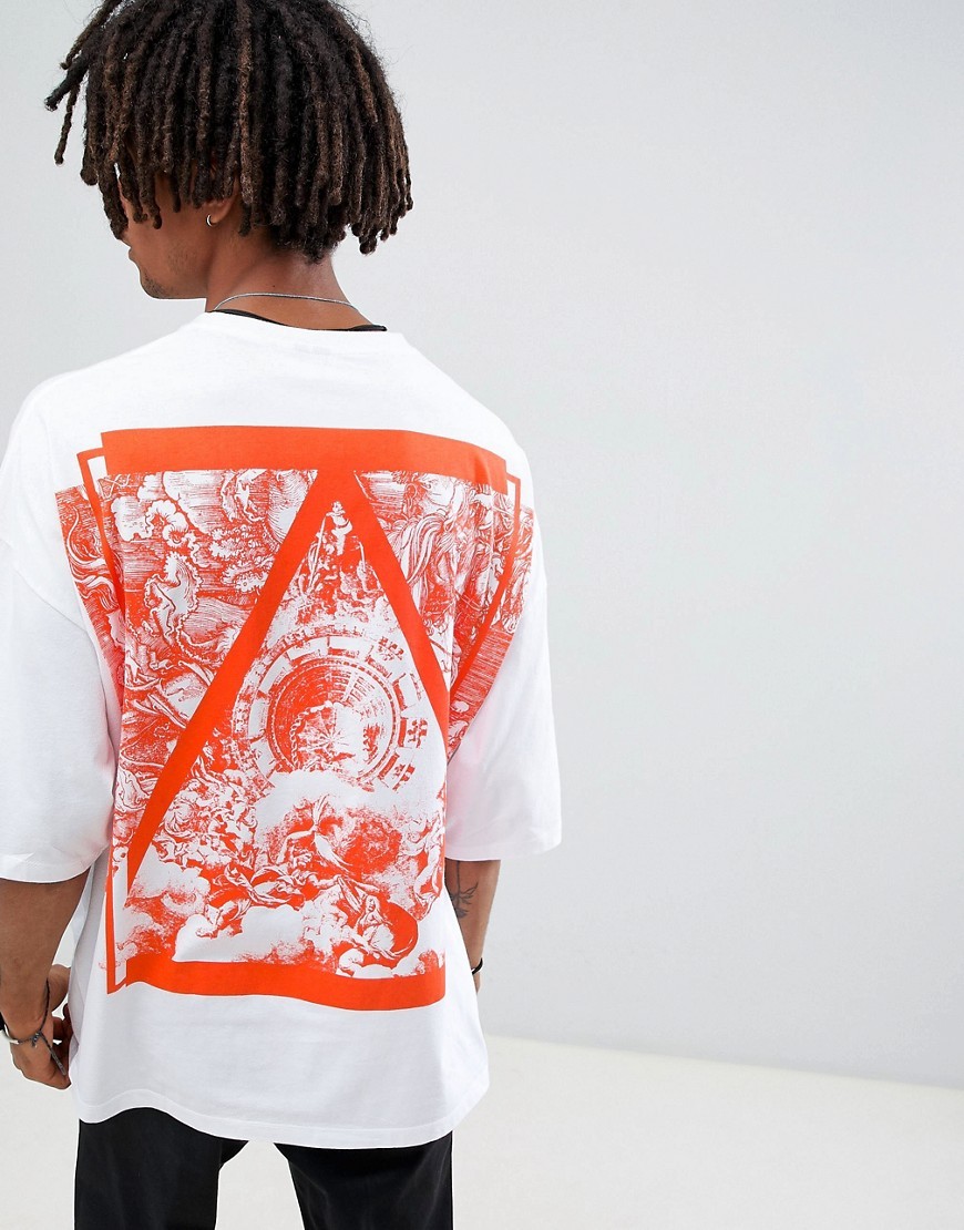 Biały T-shirt oversize print tył rękaw połówka XXL