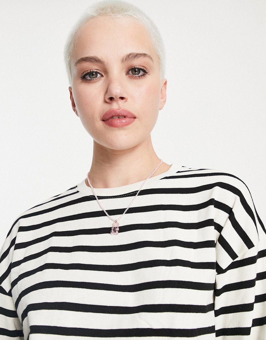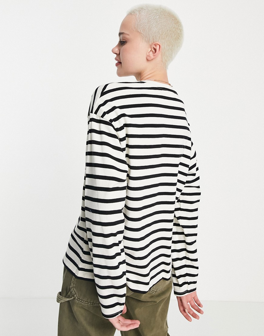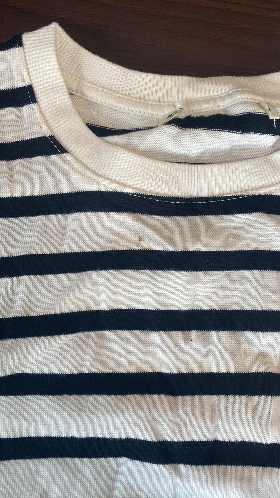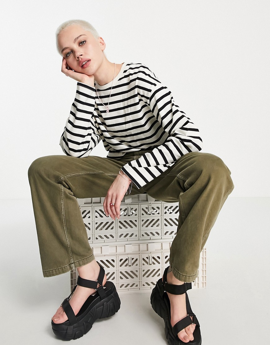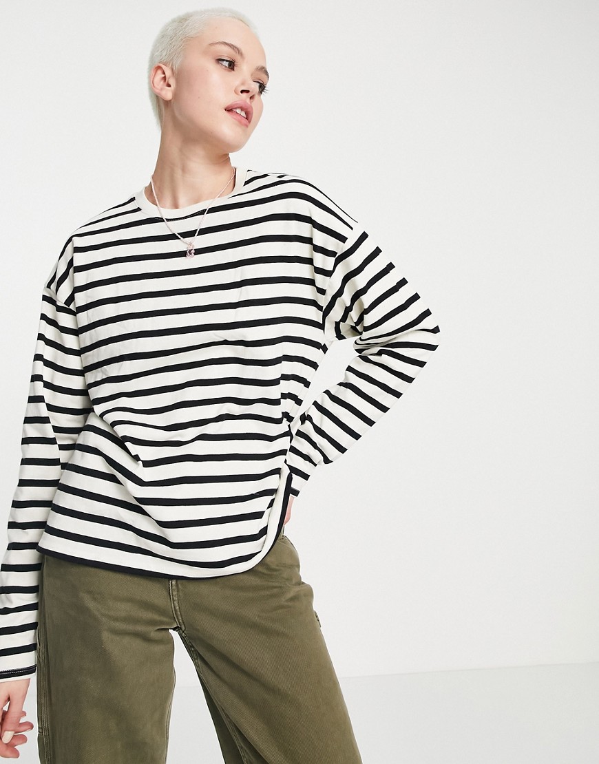 Biały T-shirt oversize z długimi rękawami w paski defekt M