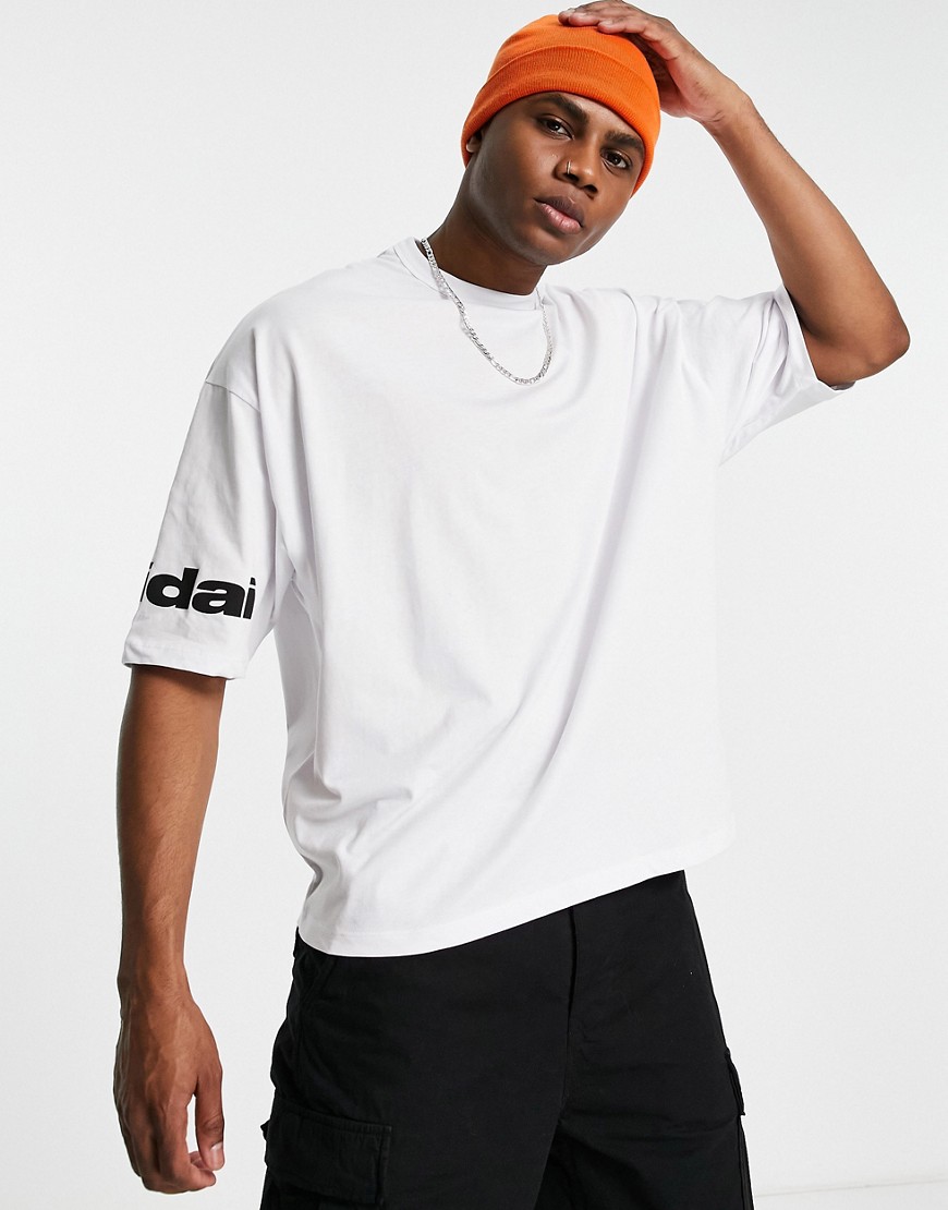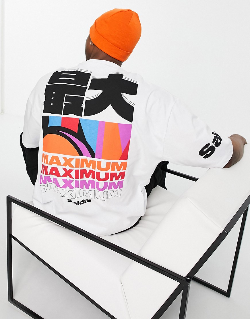 Biały T-shirt oversize z dużym nadrukiem na plecach defekt S