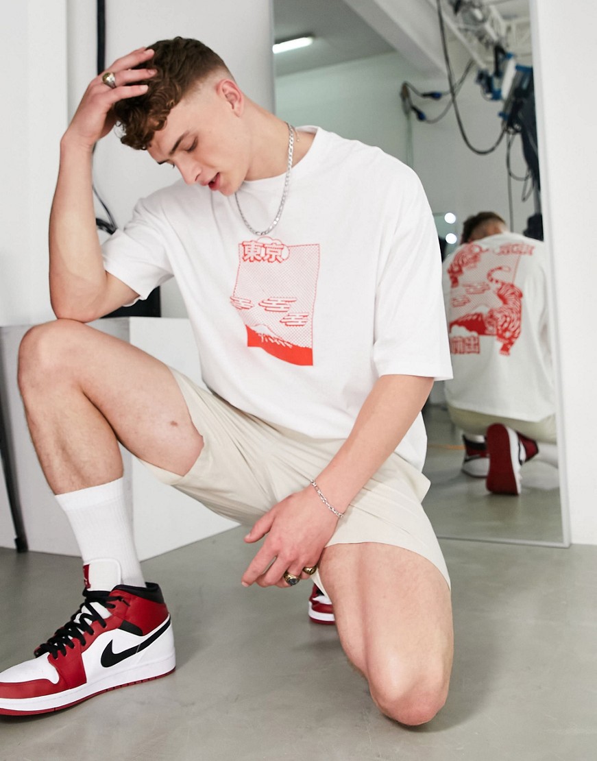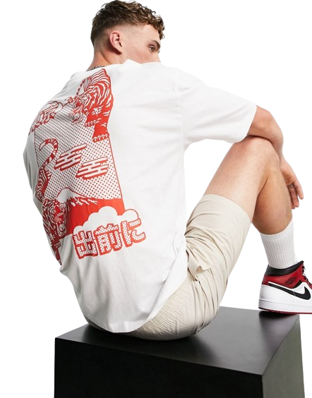 Biały T-shirt oversize z nadrukiem tygrysa na plecach M