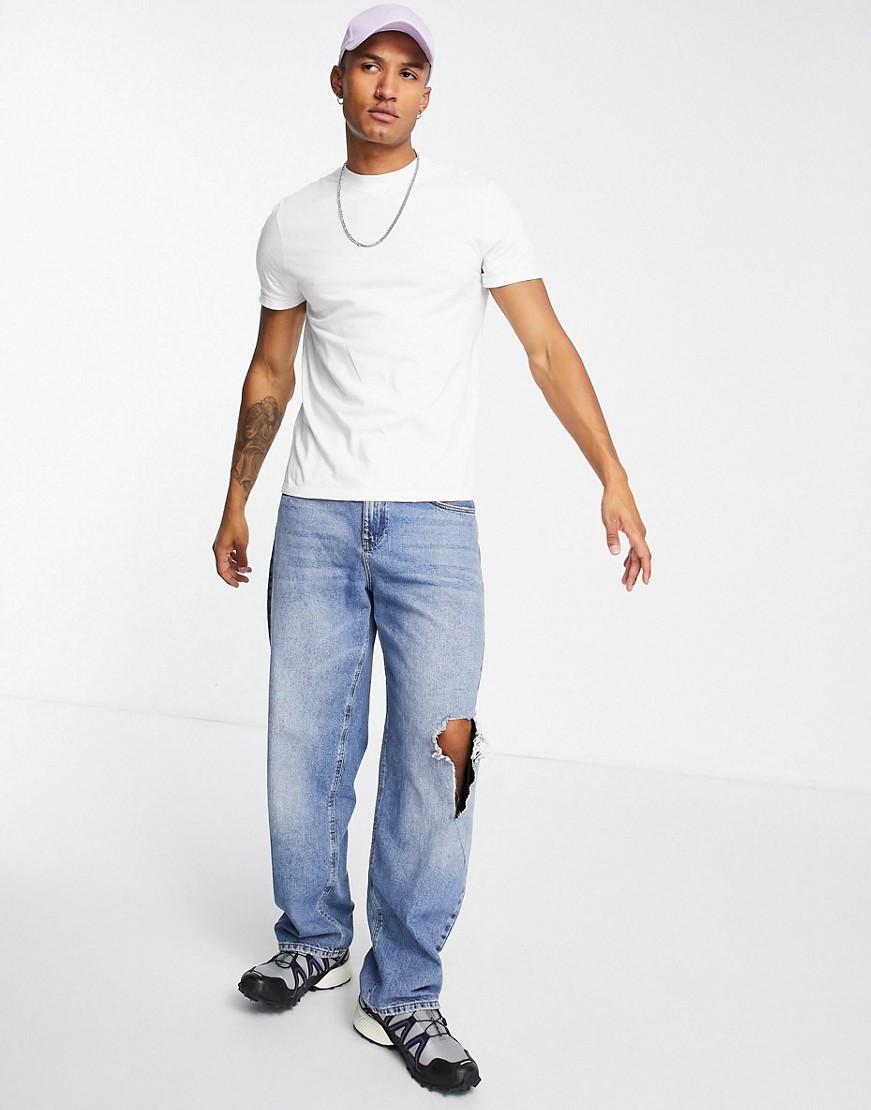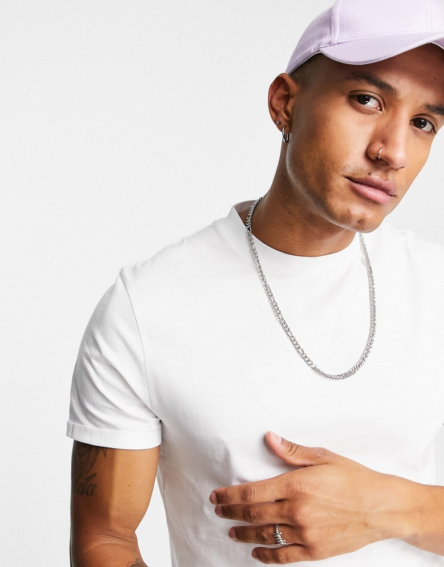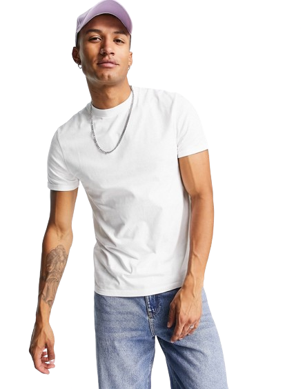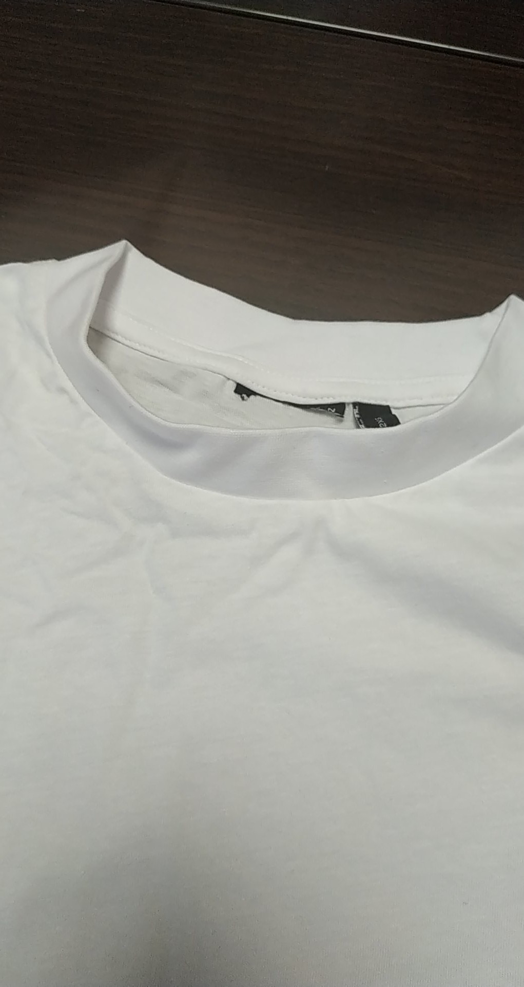 Biały T-shirt z okrągłym dekoltem i podwijanymi rękawami defekt XXS