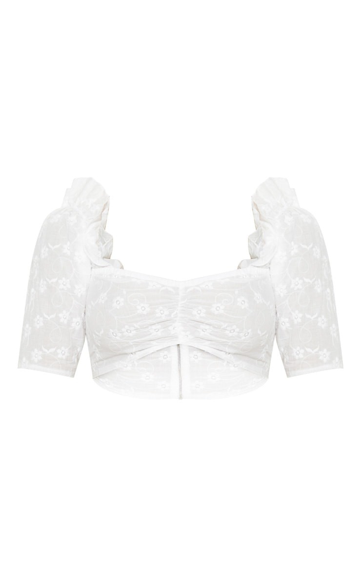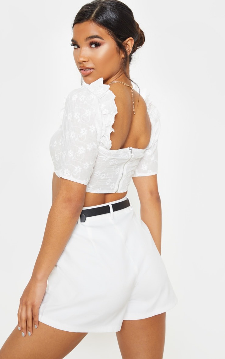 Biały top z haftem marki Pretty Little Thing
