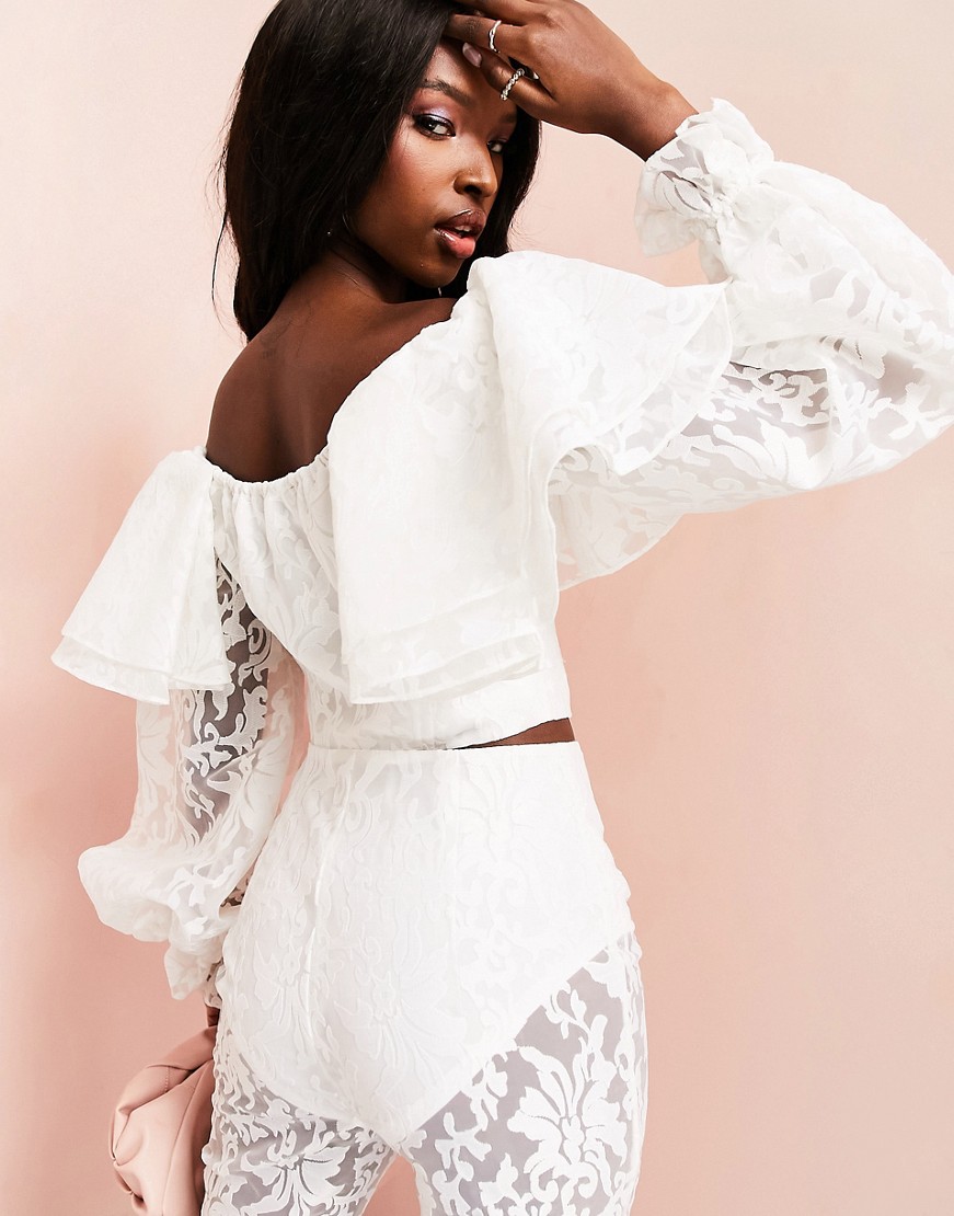 Biały top z falbankami z prześwitującej koronki 40